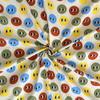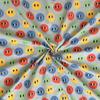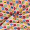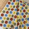 Tela estampada de algodón puro hecha a mano para bricolaje, ropa infantil, vestido, tela floral pequeña, estampado de cara sonriente de dibujos animados