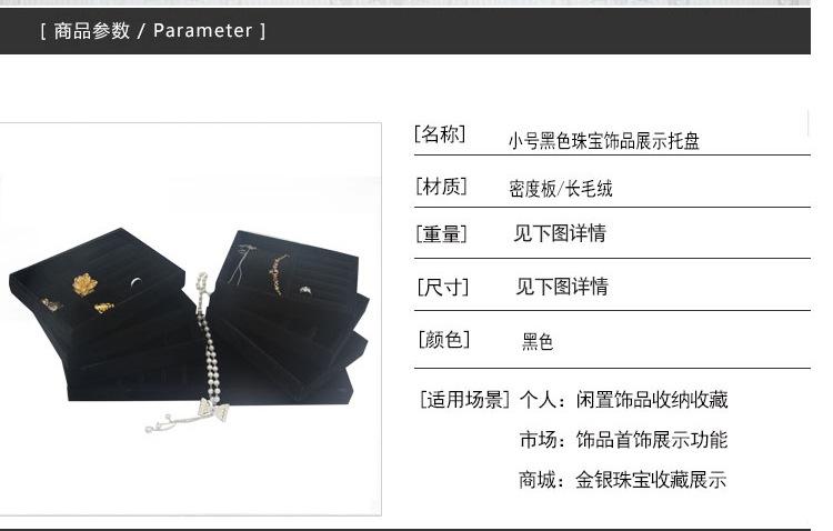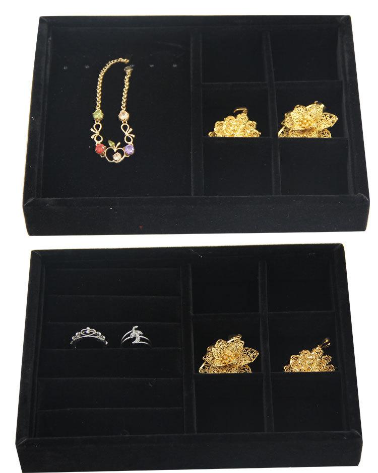Caja de franela negra para guardar anillos, pendientes y joyas, sin tapa, para guardar pulseras y collares