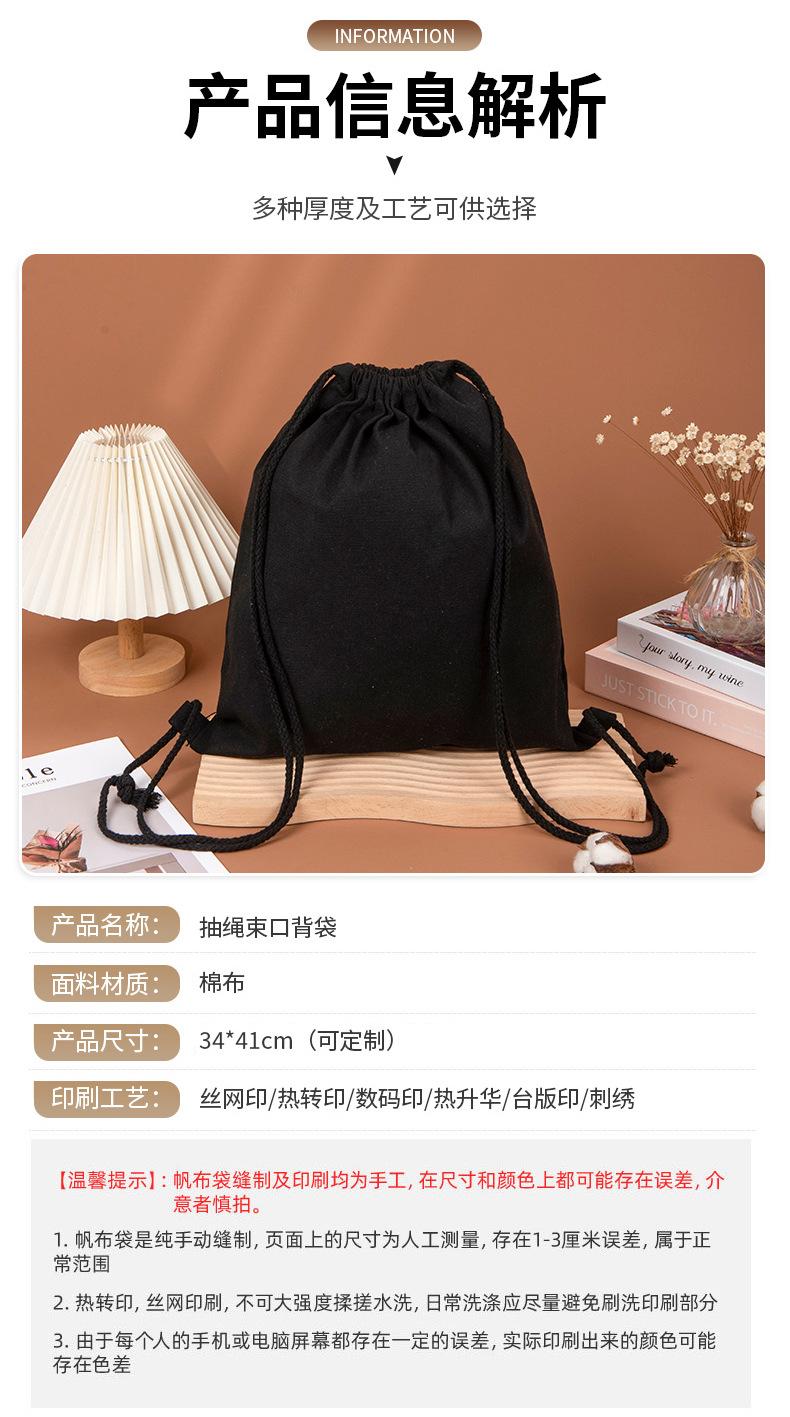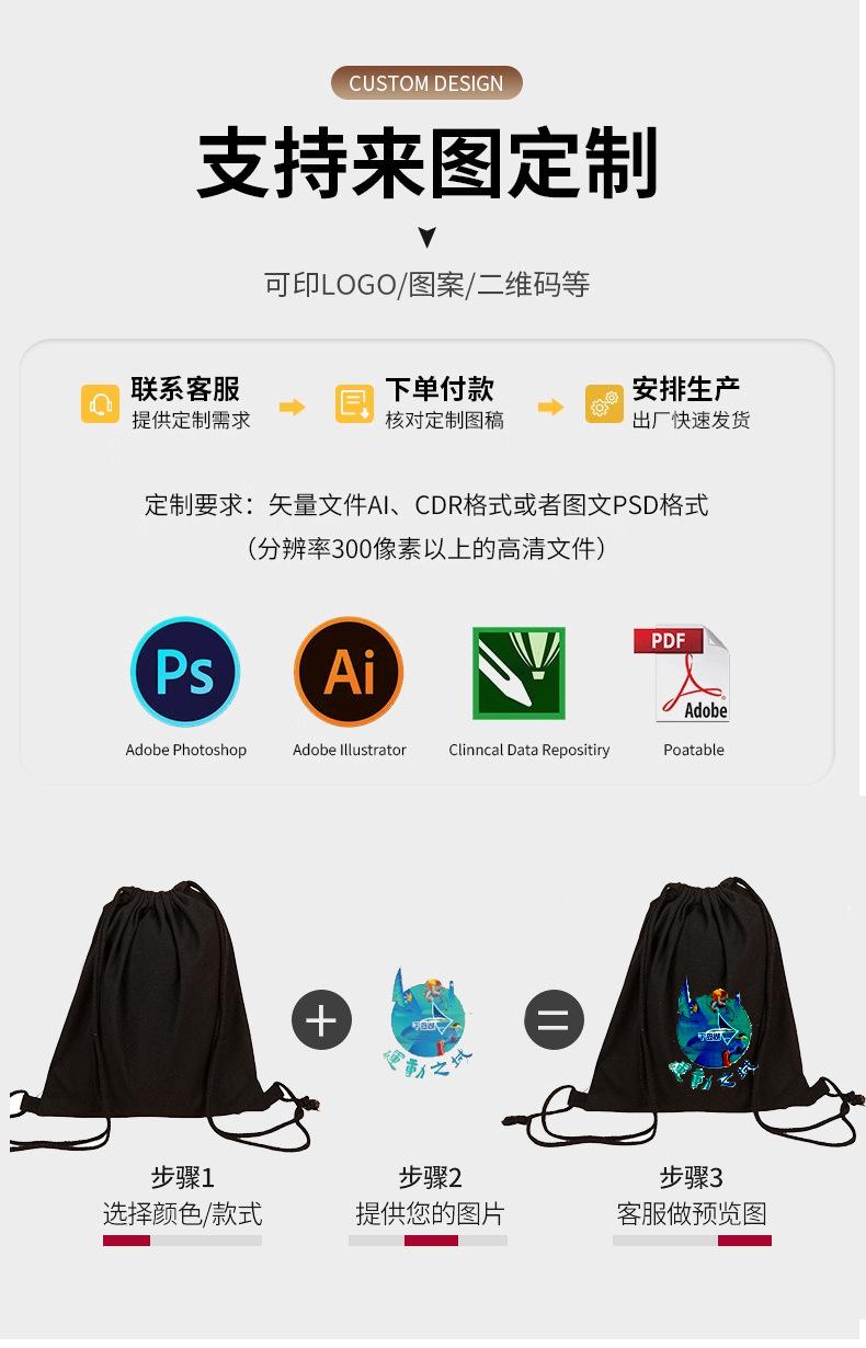 Mochila de lona para el hombro con bolsillo con cordón en blanco para fitness, bolsa de embalaje de regalo con logotipo personalizado, bolsa personalizada