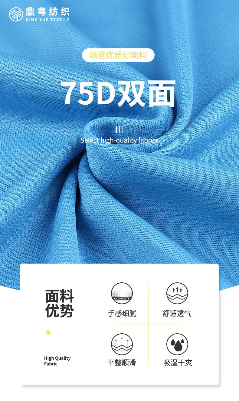 Venta al por mayor de tela plana de punto de doble cara 75D de 110 g de poliéster para vestido de camiseta de primavera y verano, tejido de punto con forro cómodo
