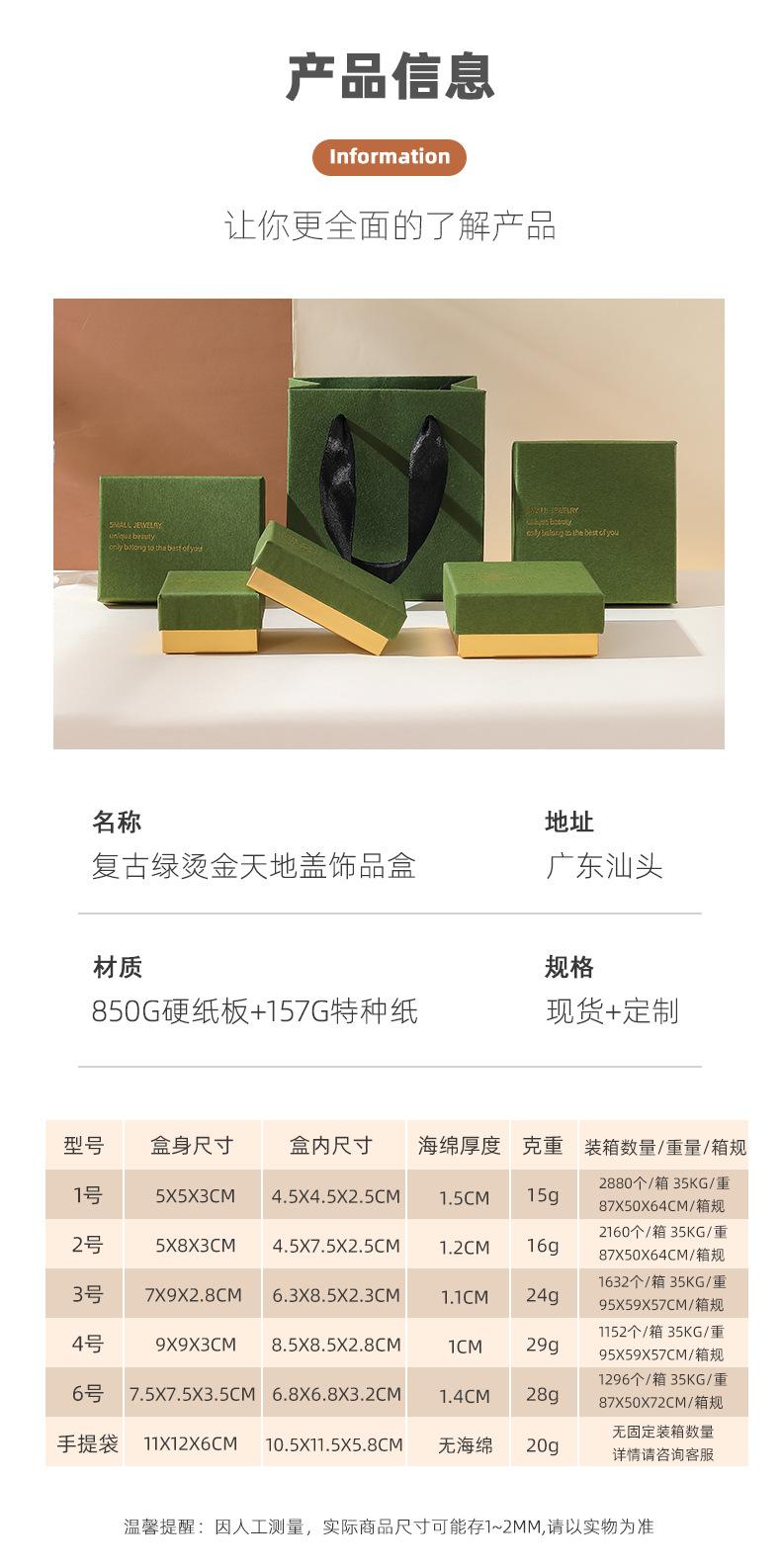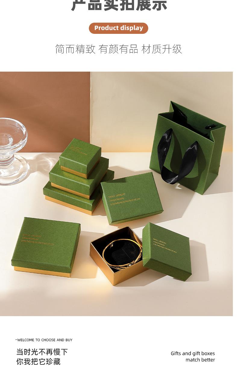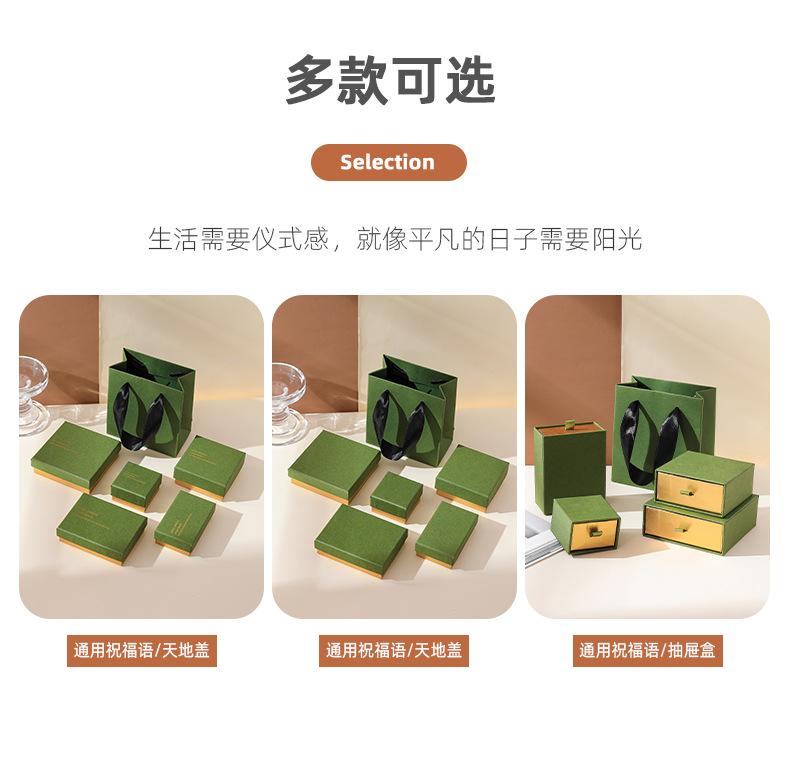 Caja de embalaje para joyería de oro verde al por mayor, disponible en stock, con cubierta de cielo y tierra, para guardar joyas y anillos de pulsera de lujo ligeros.