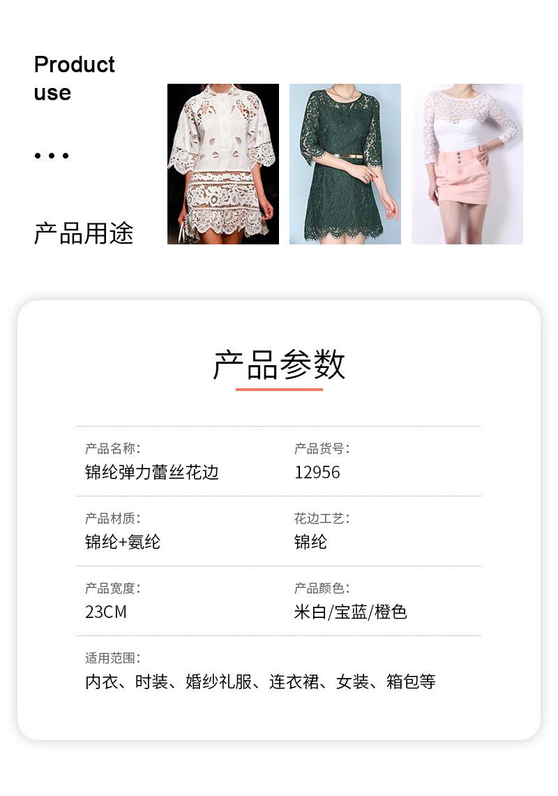 Encaje de nailon al por mayor Encaje grande Adorno Vestido Pantalones cortos de seguridad Tejido de encaje Sin estiramiento Vestido Ropa Materiales base