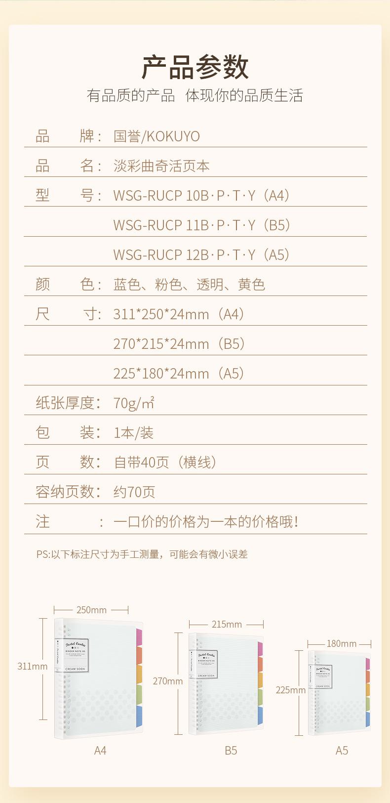 Reputación nacional de Japón KOKUYO galletas de color claro cuaderno de hojas sueltas cuaderno papel de hojas sueltas carpeta pequeña fresca