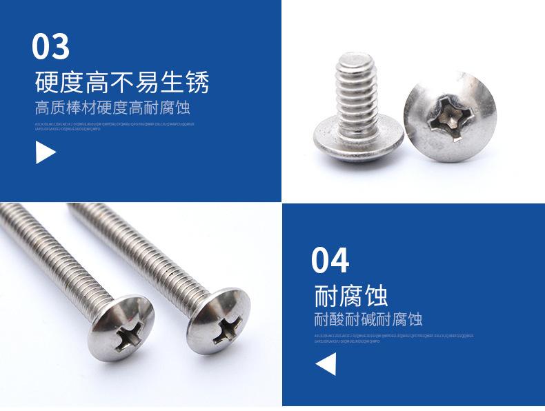 Tornillo de cabeza plana grande con cabeza de hongo UNF304, tornillo de máquina con cabeza de paraguas, de acero inoxidable 316, UNC, cruz americana