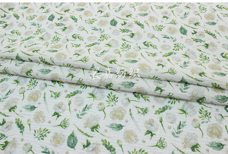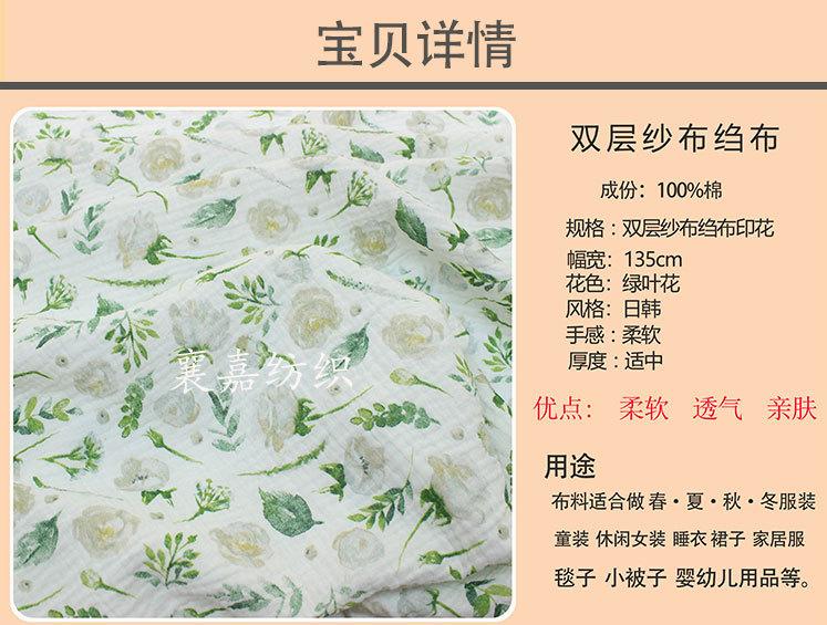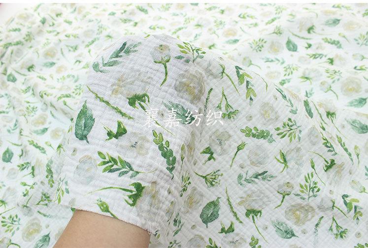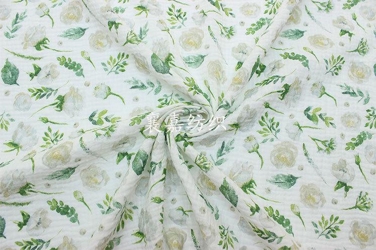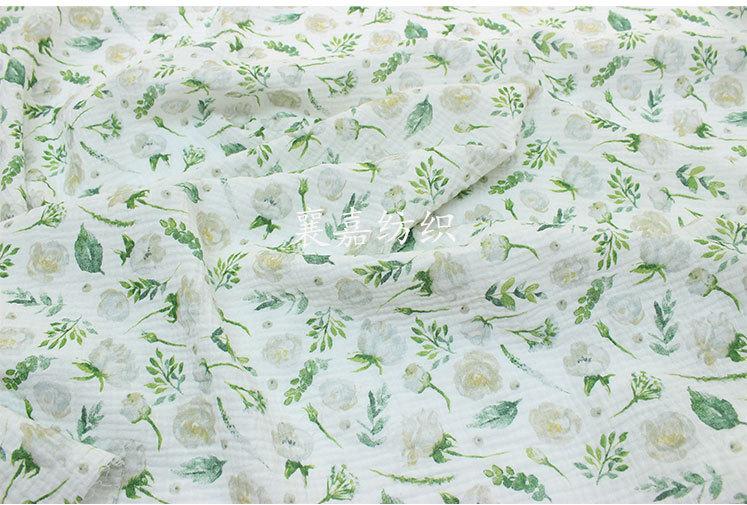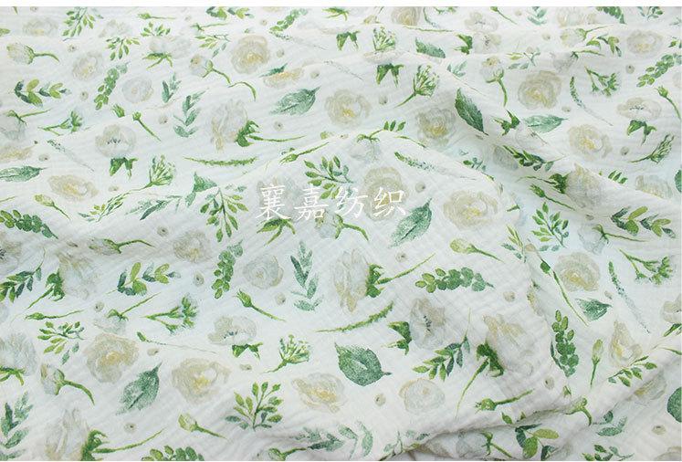 Algodón para Bebé Gasa Doble Capa Crepé Ropa para Niños Pijama Edredón Manta Tela Flores Verdes
