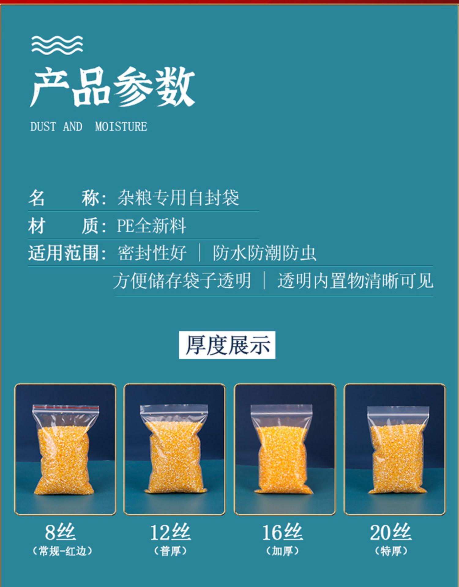 Bolsa sellada para mantener frescos los cereales, bolsa autosellable para alimentos, bolsa de plástico transparente espesa para té seco, bolsa sellada para envasar