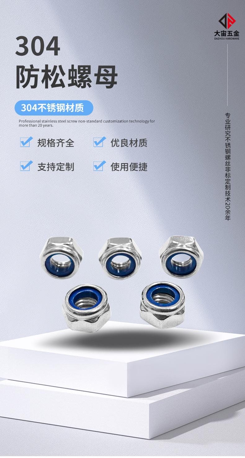 Tuerca de acero inoxidable 304, tuerca hexagonal de nailon de acero inoxidable, tapa de rosca antideslizante, autoblocante M3M4M5M6M8