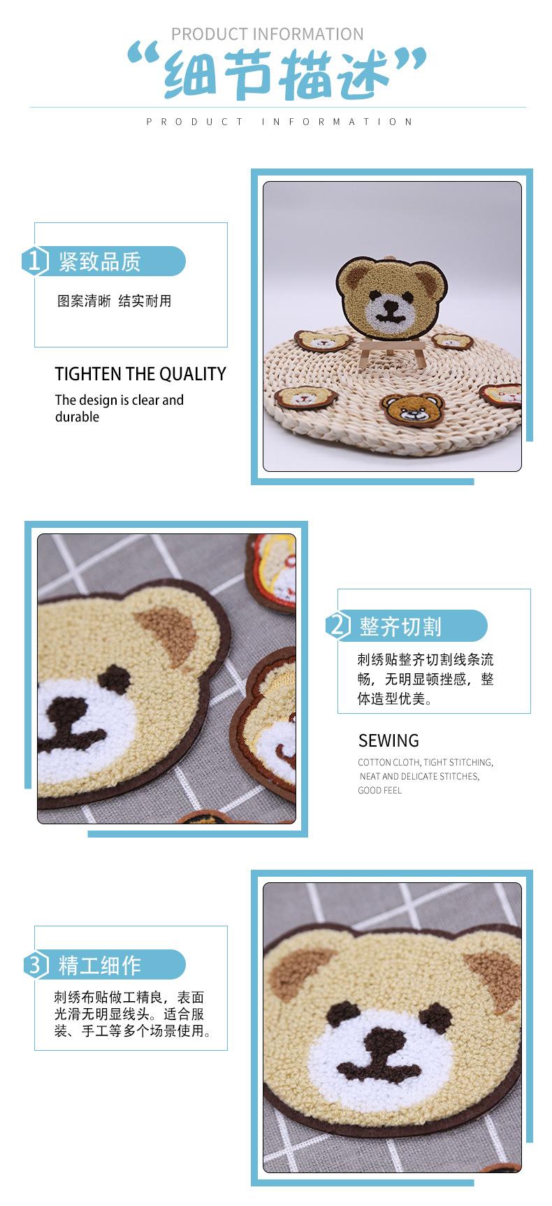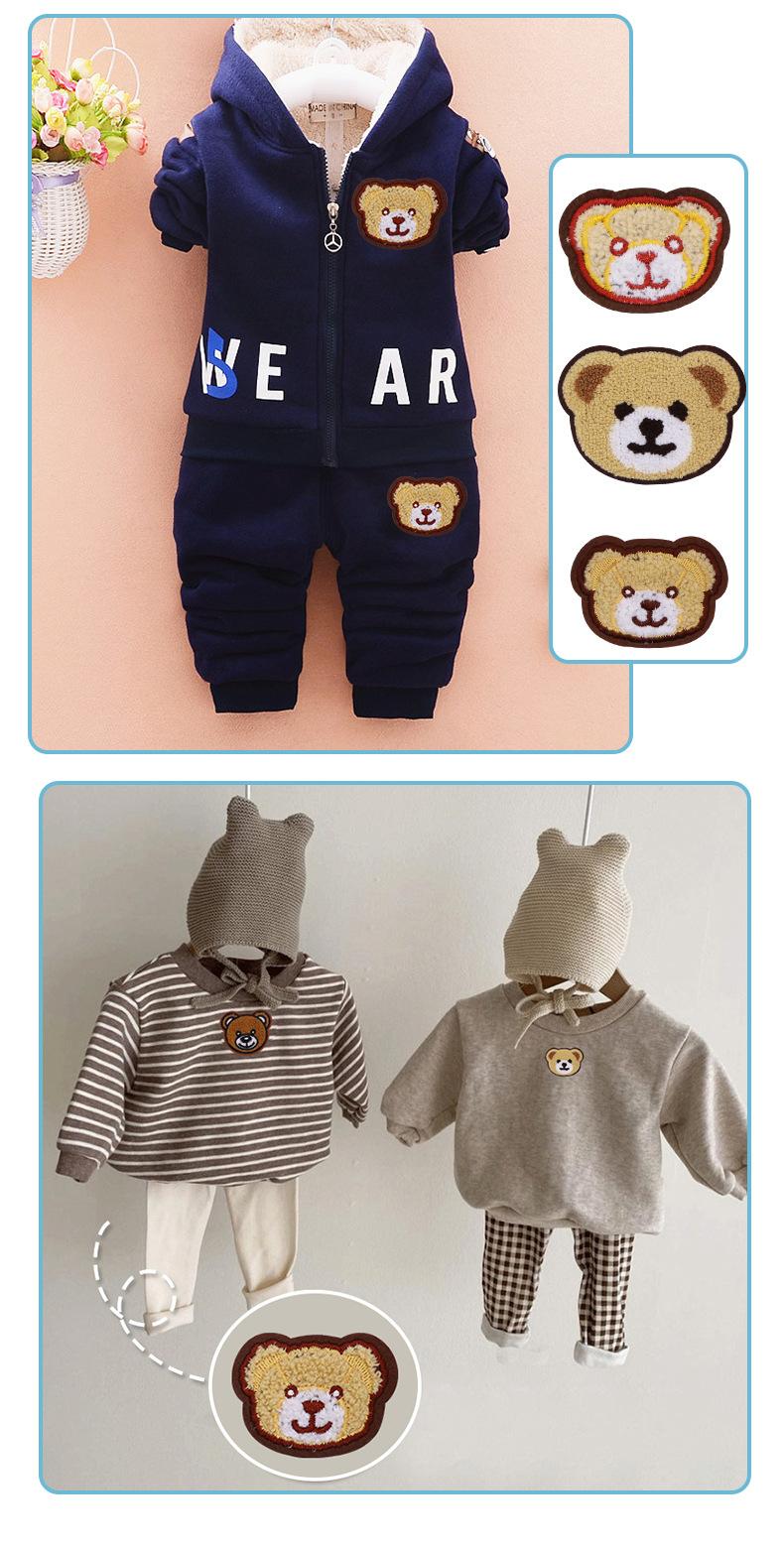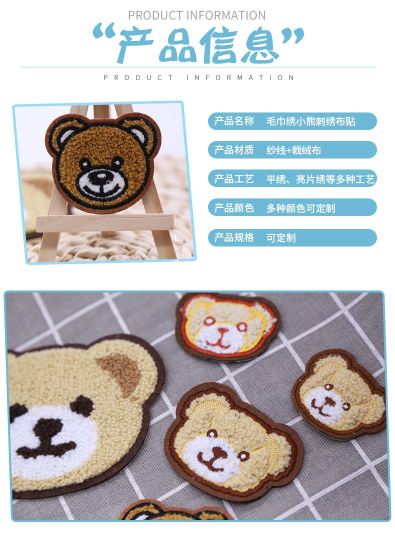 Toalla de chenilla con cabeza de oso bordada por computadora, pegatinas de tela bordadas, parche con agujero roto para ropa, decoración de bolsos DIY