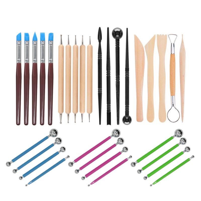 Juego Combinado de Herramientas de Arcilla para Cerámica de 23 Piezas Madera Pequeño Acero Inoxidable Pluma de Indentación Suministros de Arte Venta al por Mayor Plástico Cuchillo de Madera