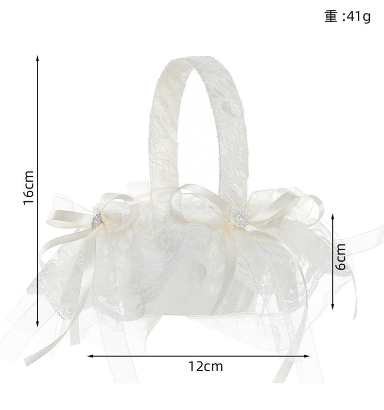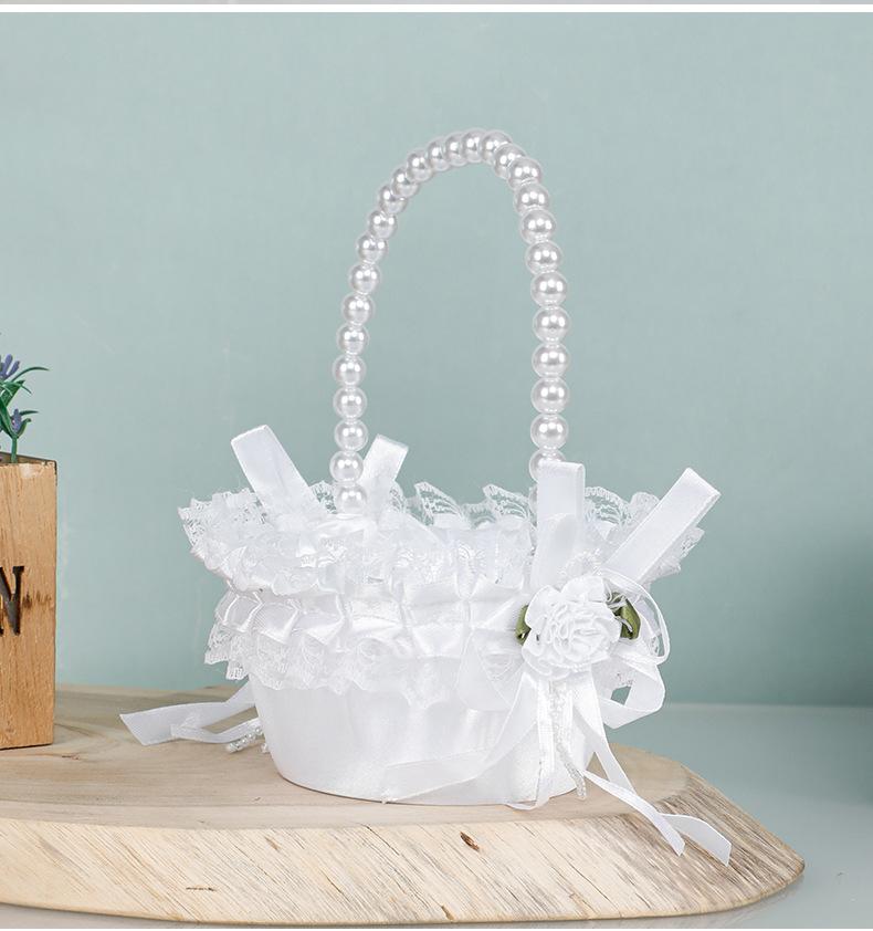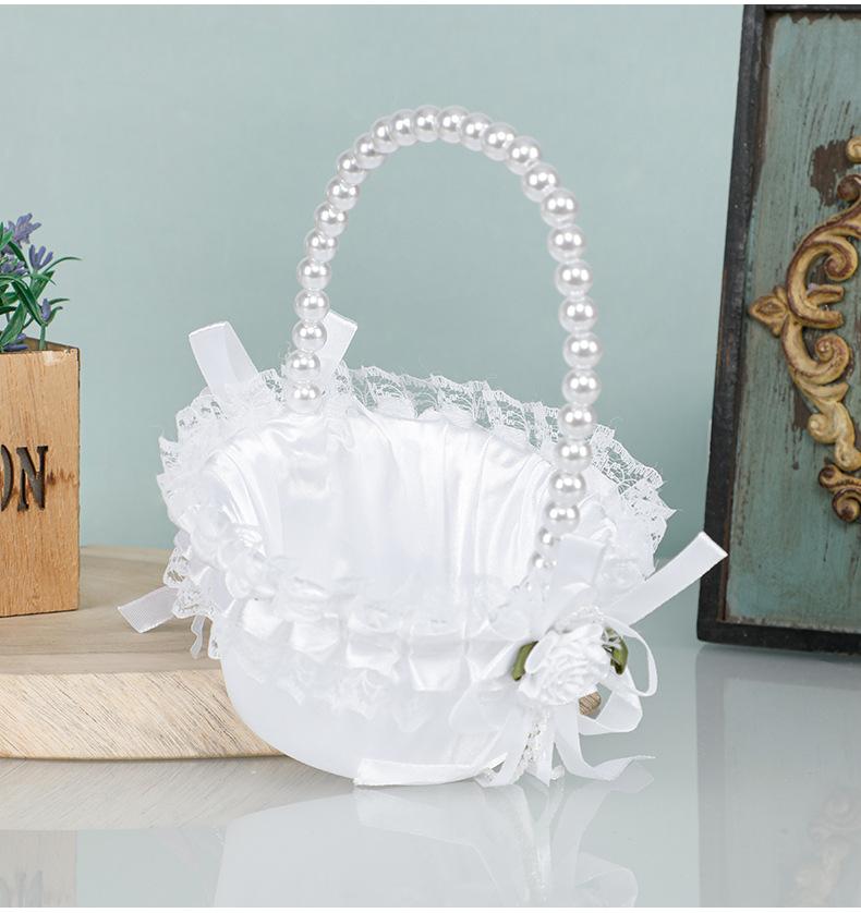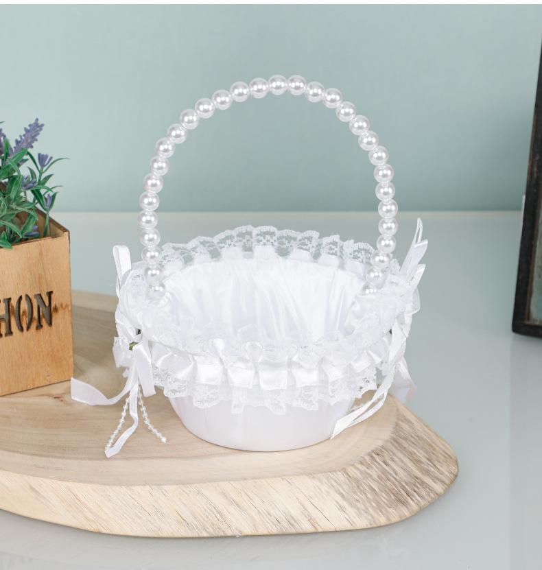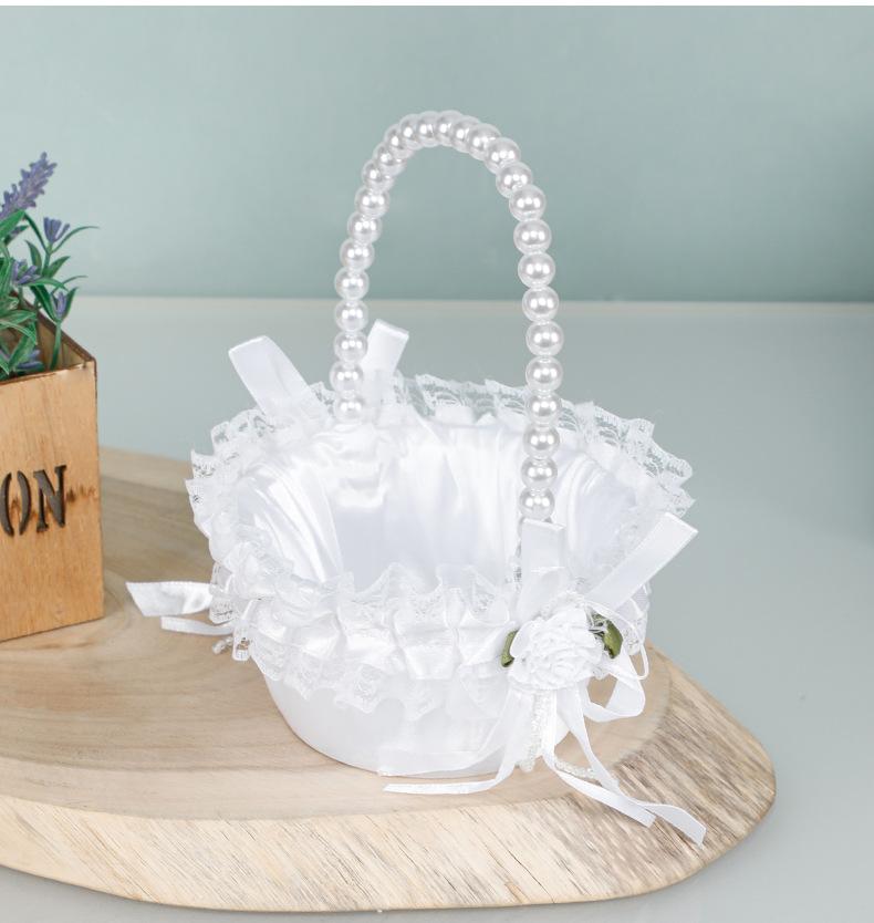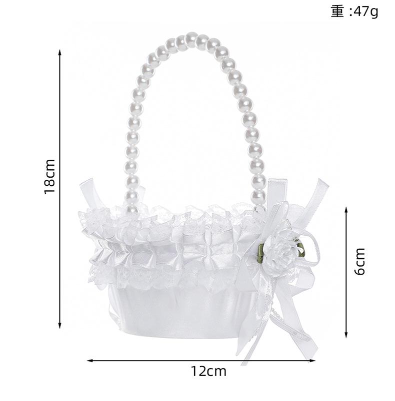 Cesta de flores de encaje blanco niña de las flores esparciendo flores cesta de flores de perlas dama de honor portátil cesta de flores pequeña nueva boda occidental cesta de boda