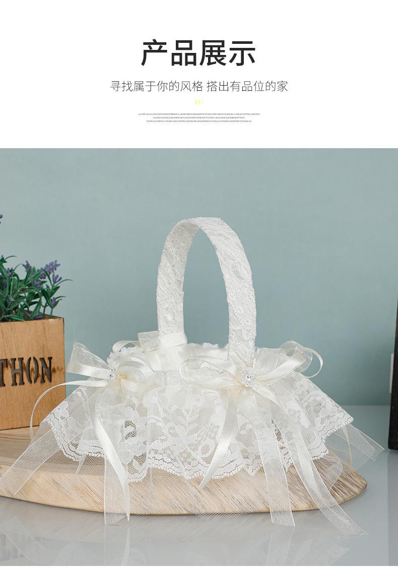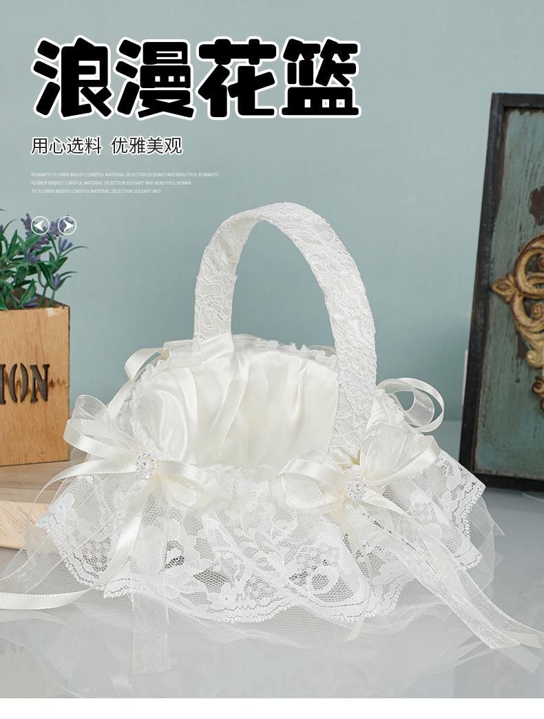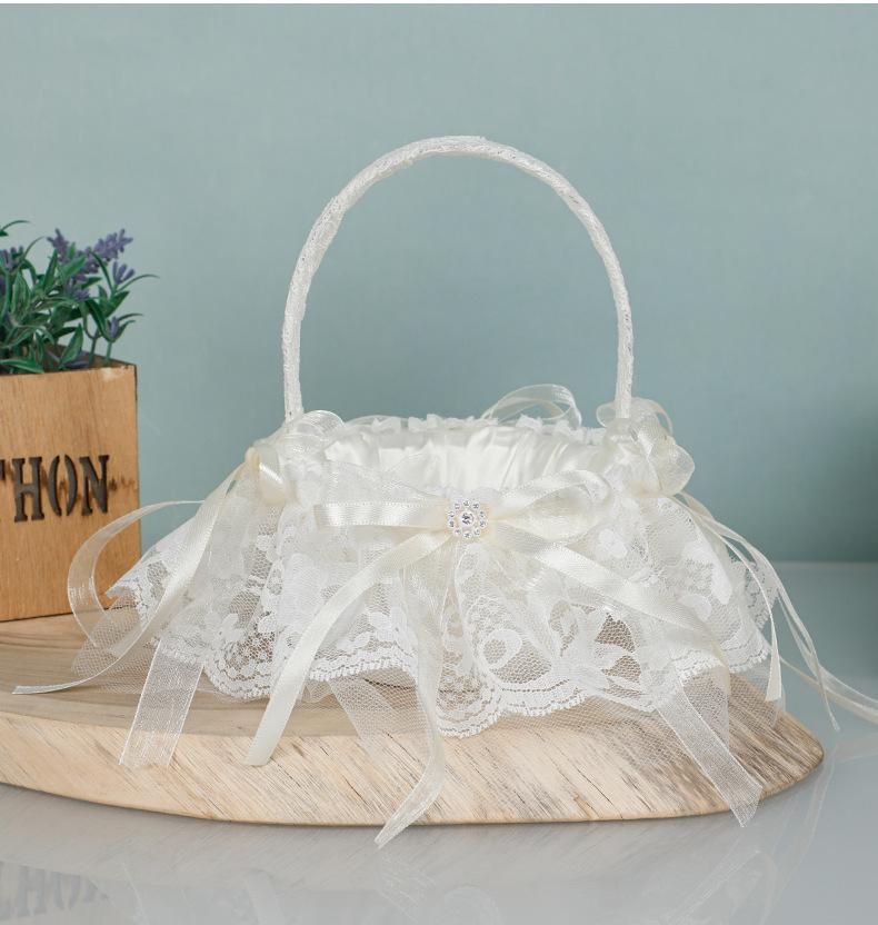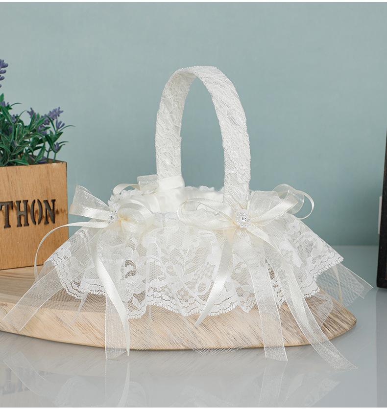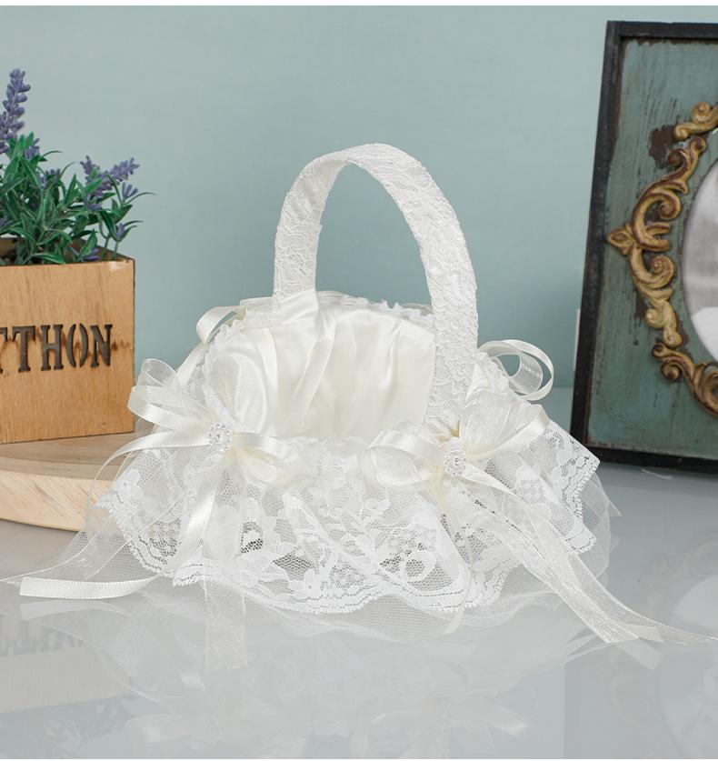 Cesta de flores de encaje blanco niña de las flores esparciendo flores cesta de flores de perlas dama de honor portátil cesta de flores pequeña nueva boda occidental cesta de boda