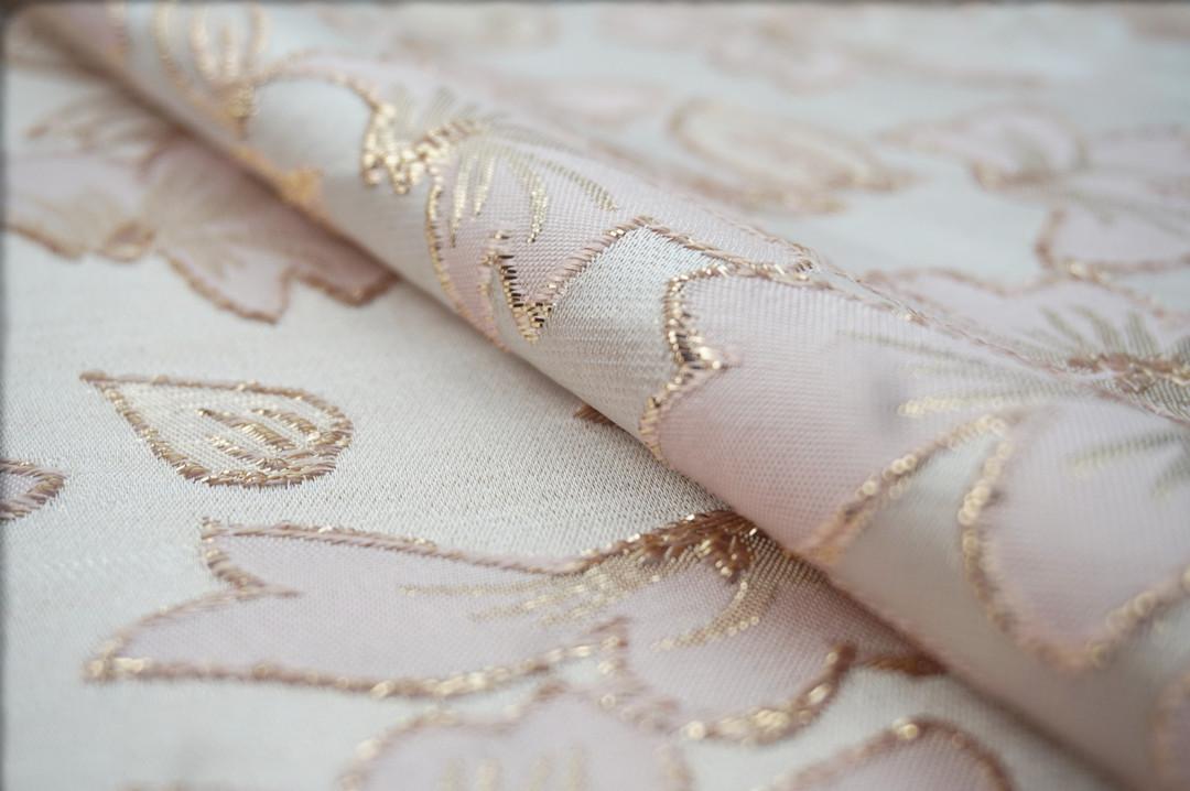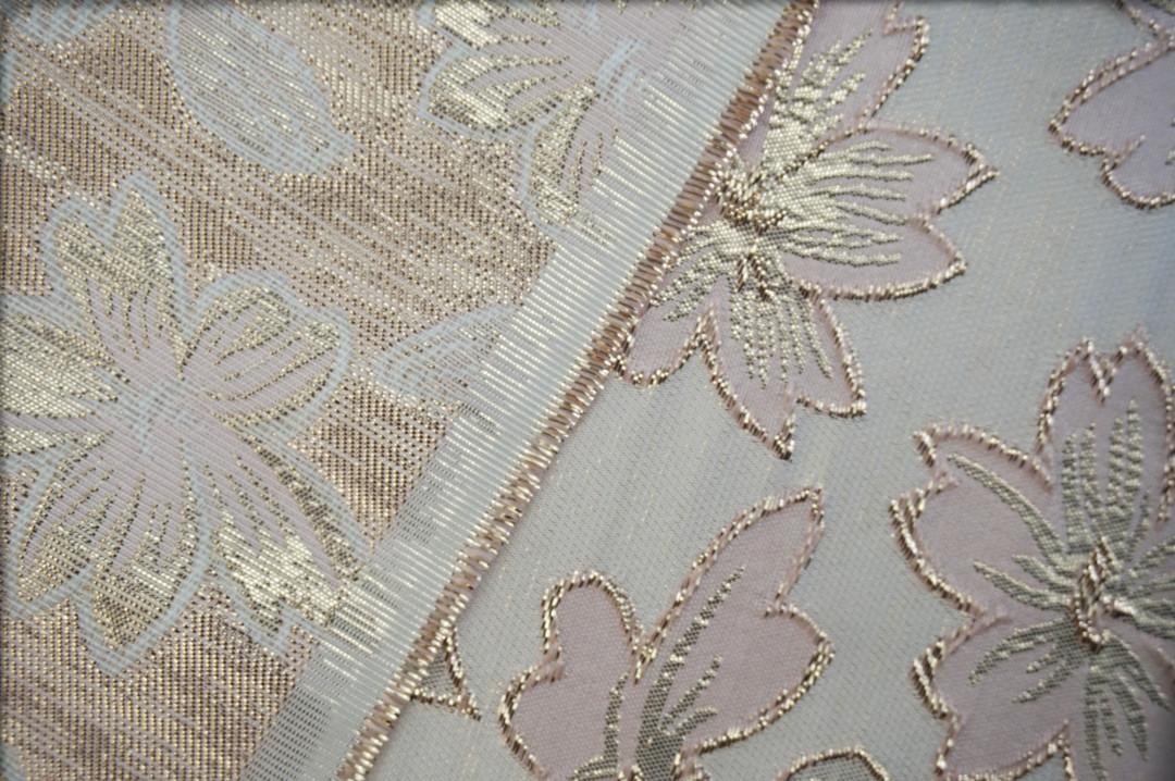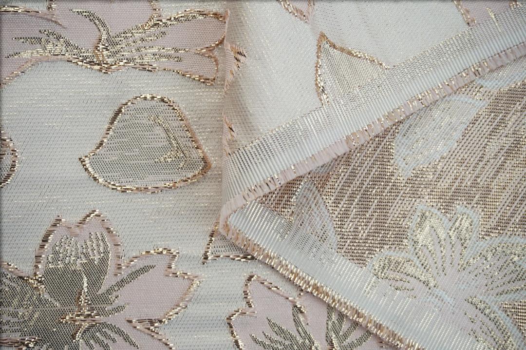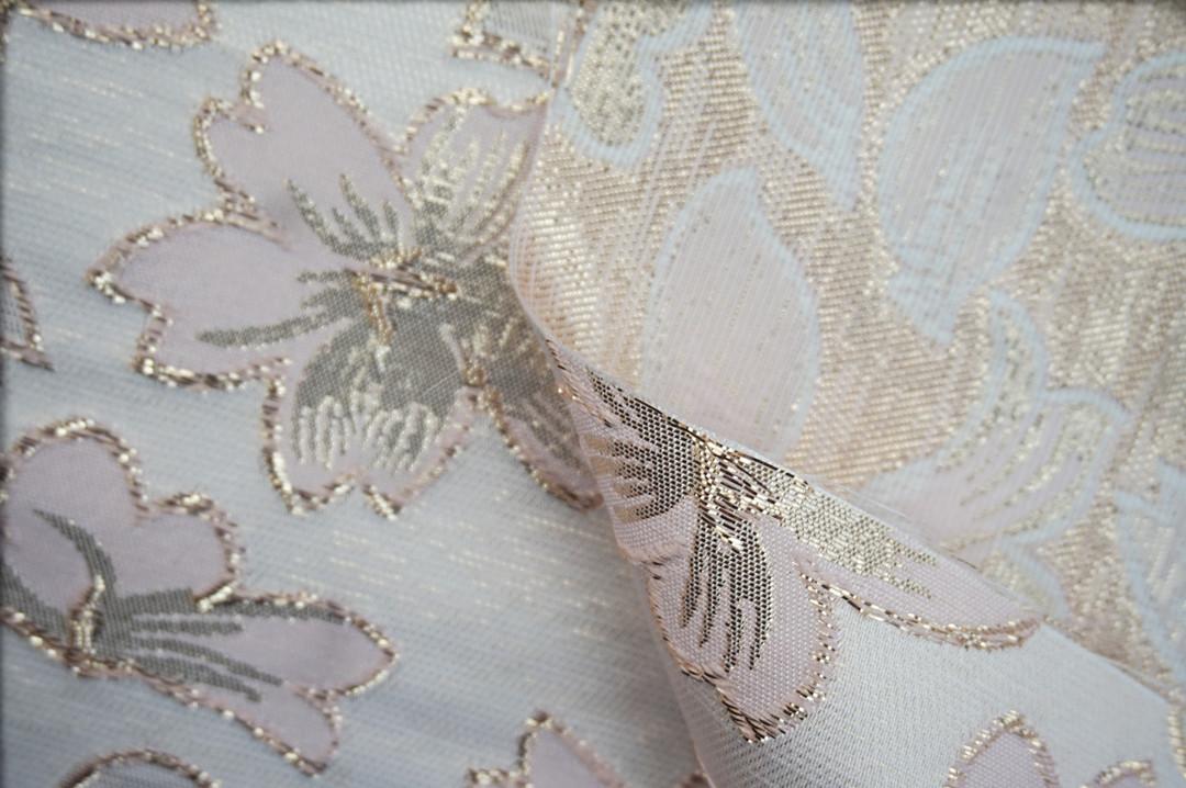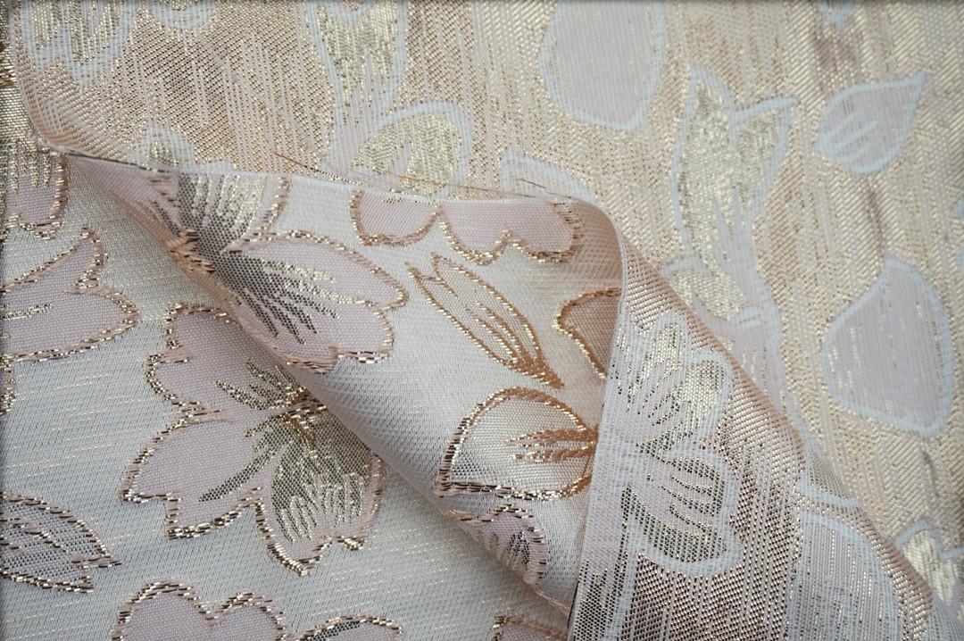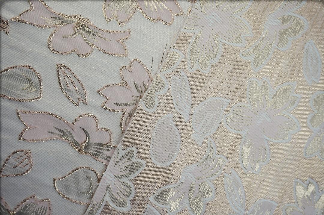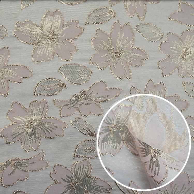 Tipo/Nombre: Tejido jacquard de flores con borde dorado de hilo dorado y plateado