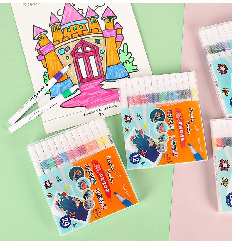 Marcador Acrílico a Base de Agua para Estudiantes de Primaria Opaco DIY Pintura Artística Apilable 24/48 Colores Marcador de Punta Suave
