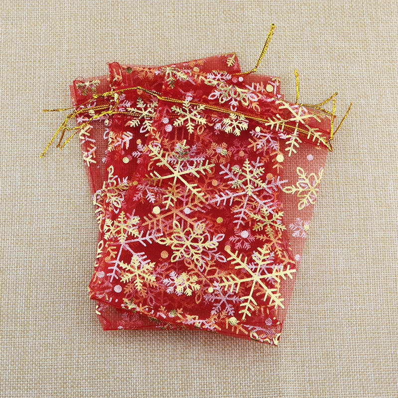Bolsa de hilo con copos de nieve de color bronce, pequeña, para regalo de Navidad, decorativa, de organza, para embalaje de joyas, venta al por mayor