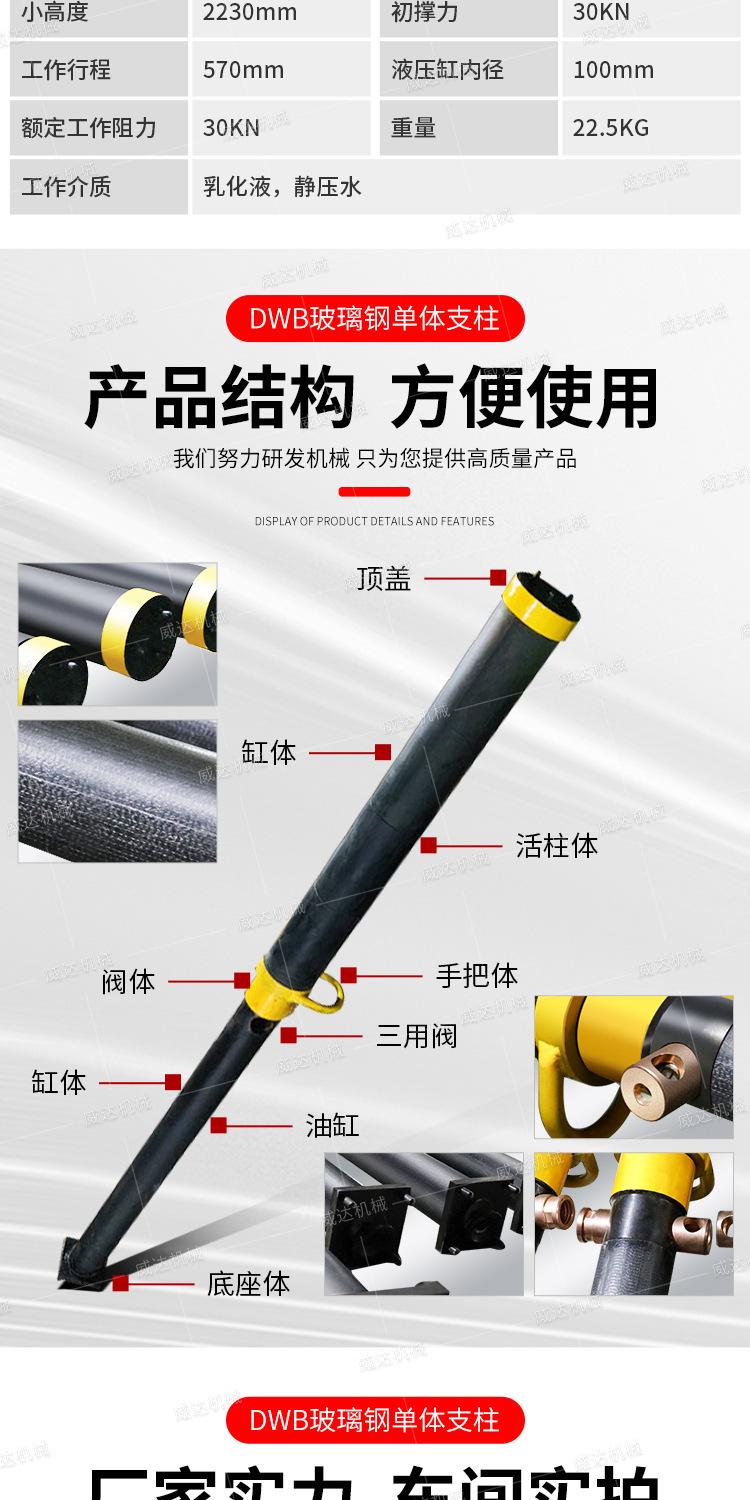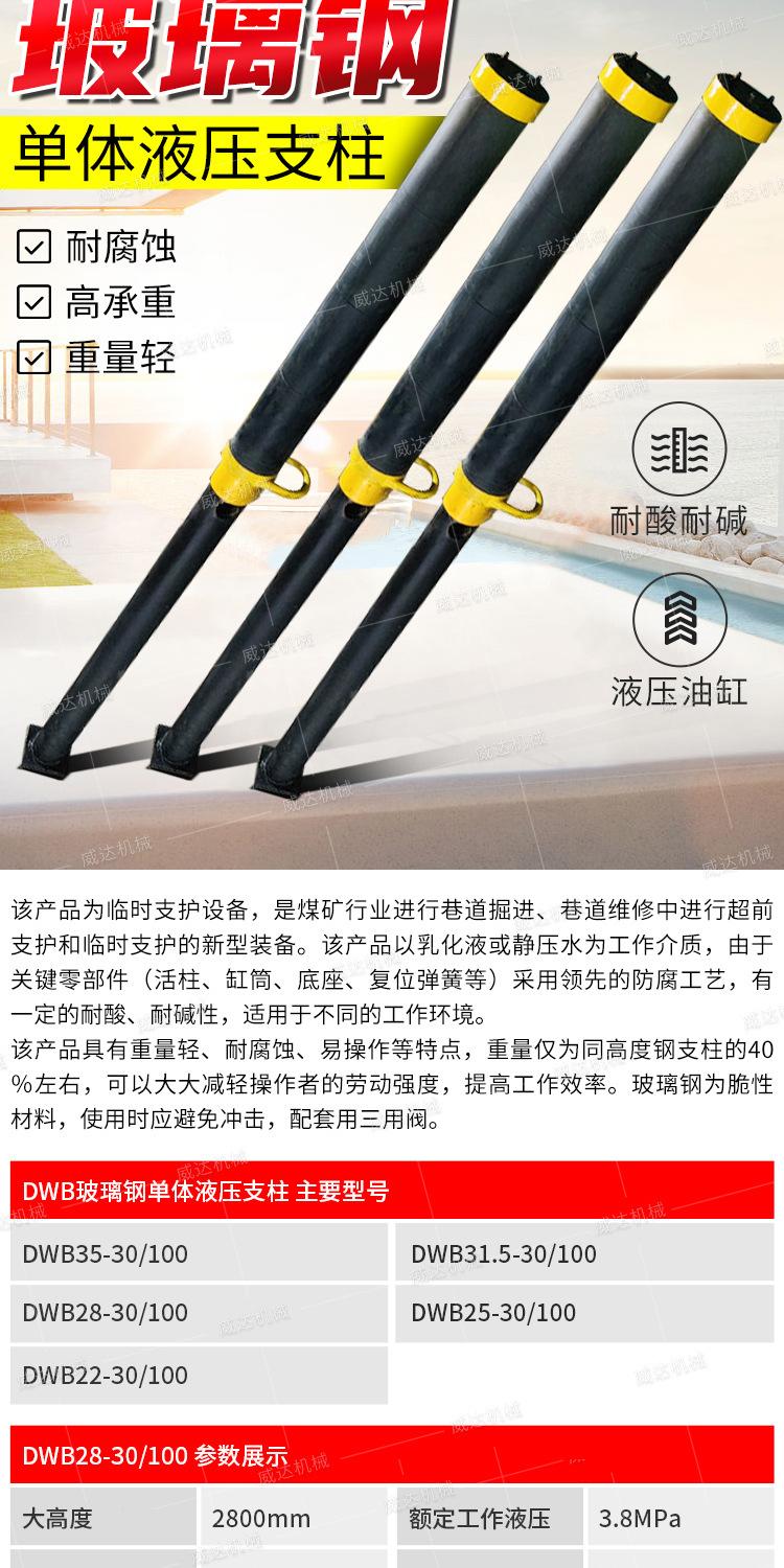 Soporte hidráulico simple de plástico reforzado con fibra de vidrio DWB3.5 para techo de carretera de mina de carbón ligero, soporte hidráulico simple, soporte temporal