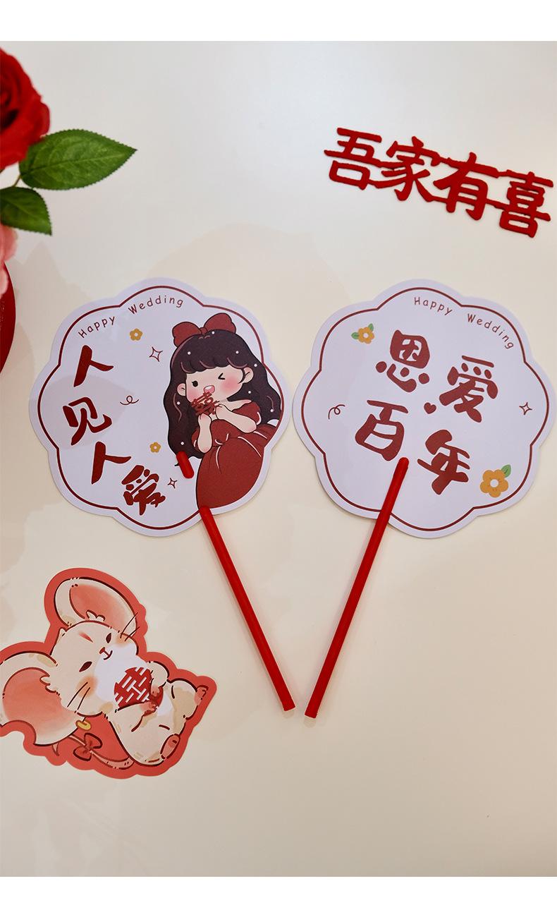Abanico de dama de honor para boda Chammit, abanico chino para novia, accesorios para fotos de boda, abanico de doble cara