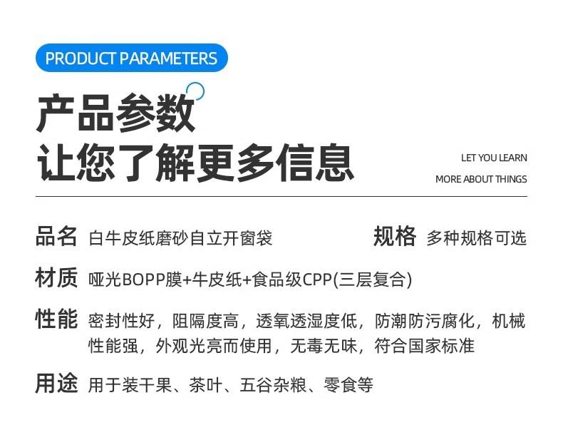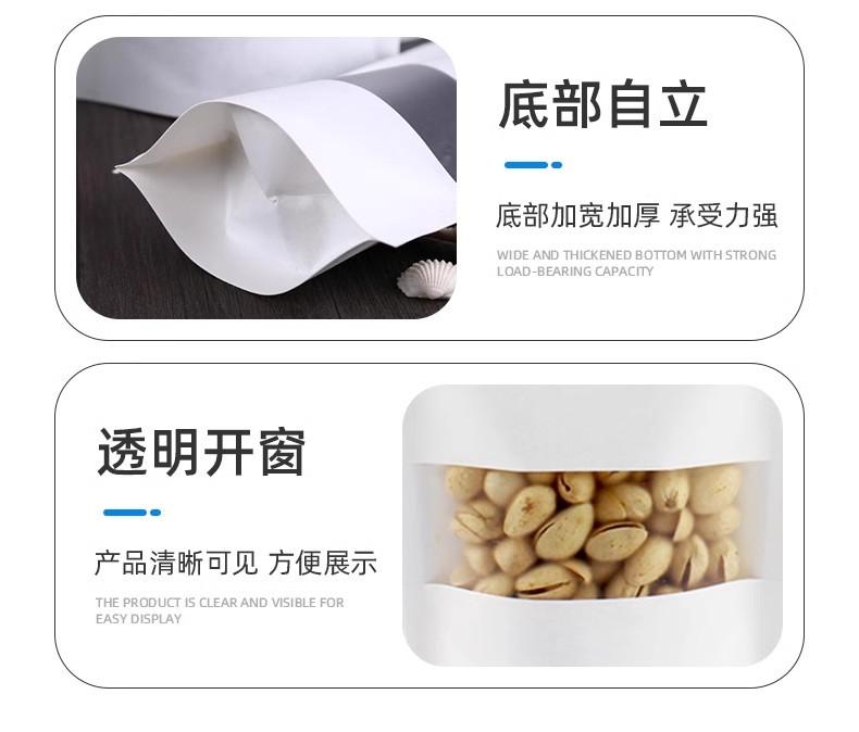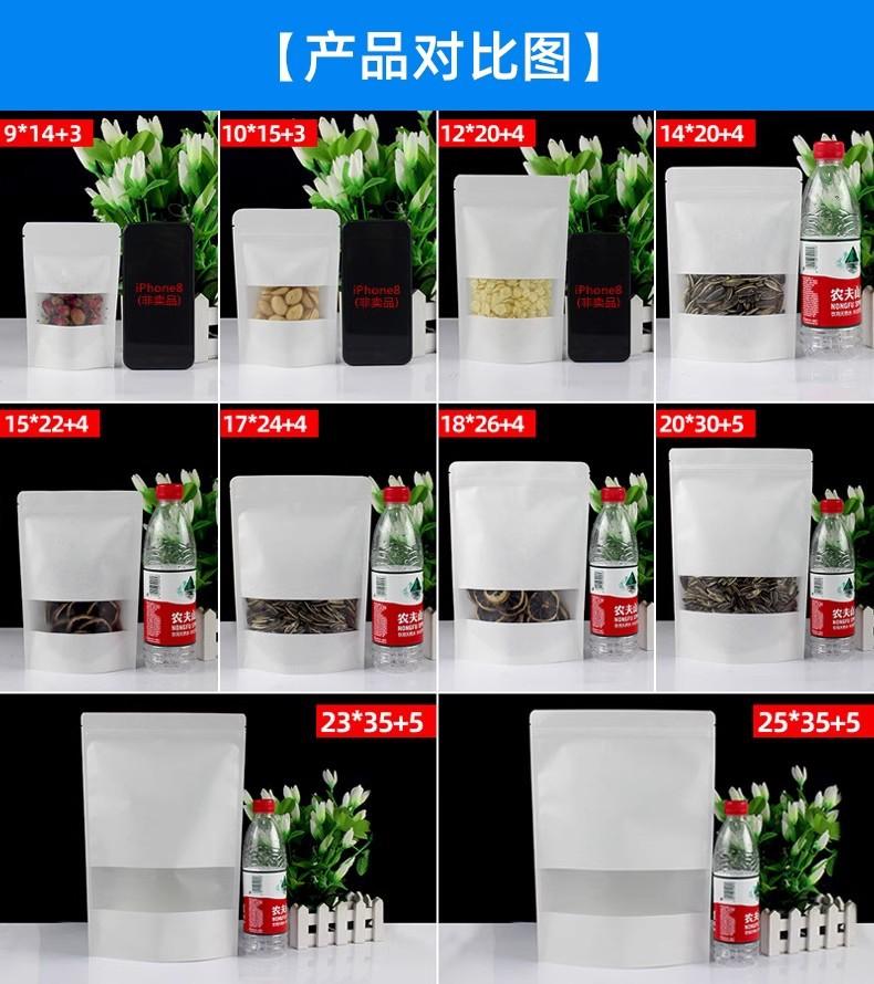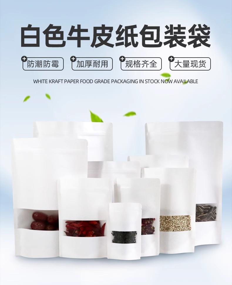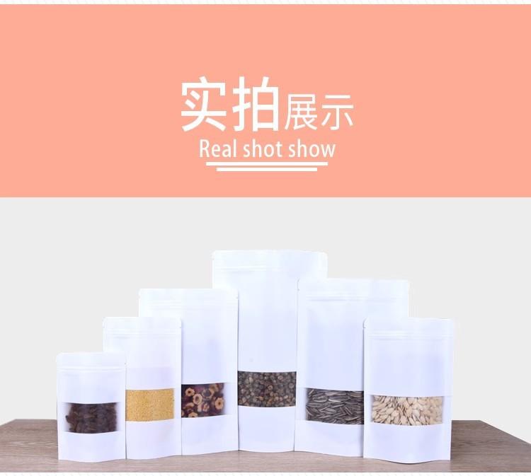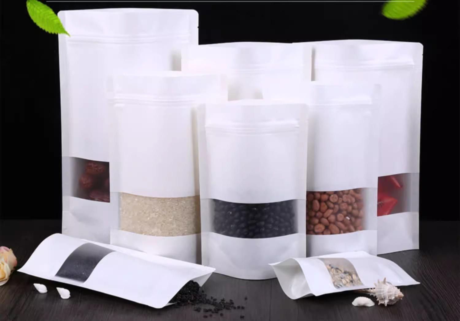 Bolsa Stand-Up de Papel Kraft Blanco con Ventana, Bolsa Gruesa Sellada con Cierre Ziploc para Té, Nueces, Snacks, Bolsa de Embalaje para Alimentos Autosellable