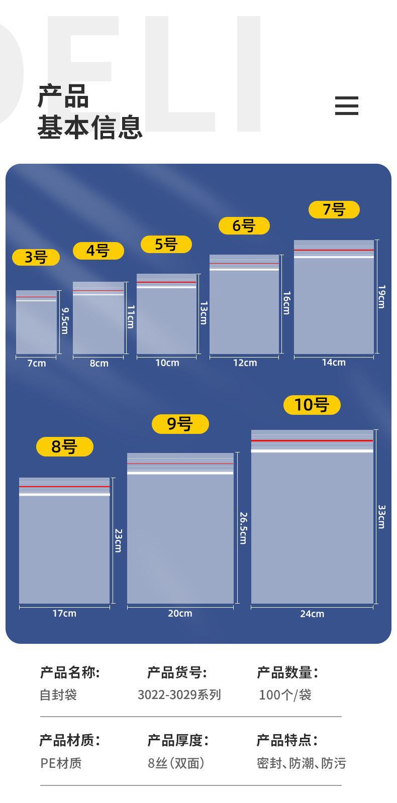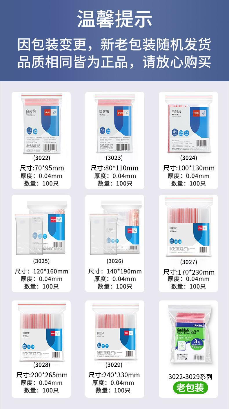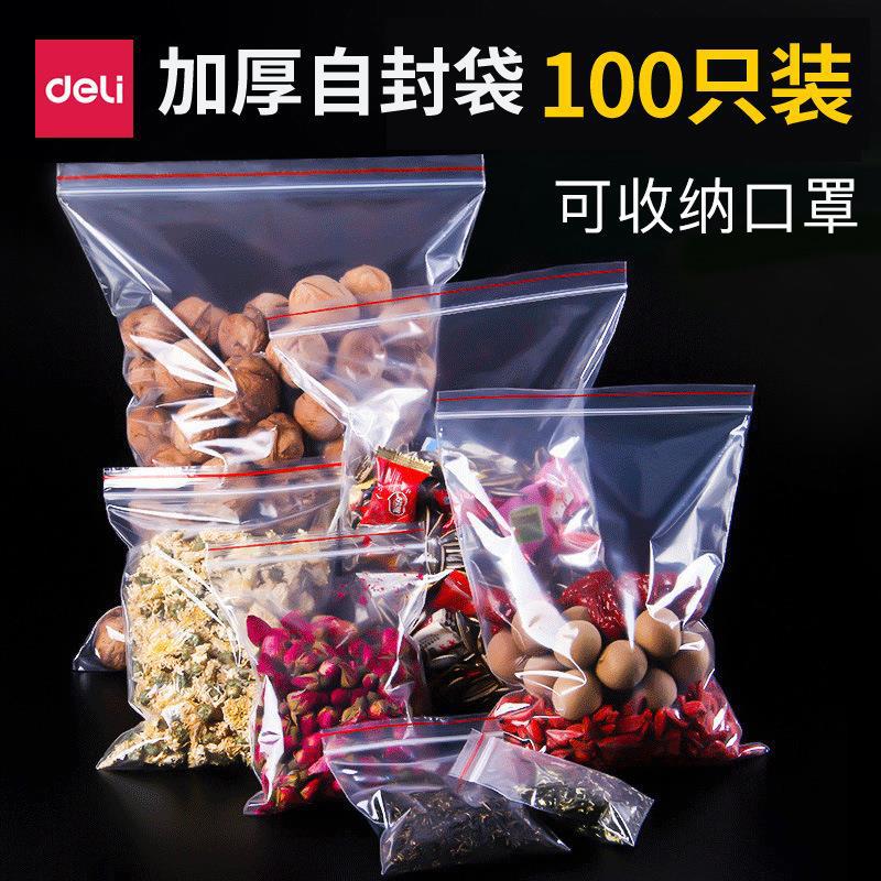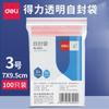 Deli No. 3-10 Bolsa Ziplock Bolsa de Plástico Bolsa de Plástico Engrosada Bolsa de Embalaje 100 Bolsas Selladas Bolsa con Cadena de Clip Venta al por Mayor