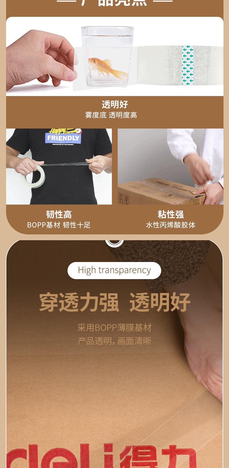 Deli 30213 cinta de sellado transparente 48 mm * 100y cinta transparente cinta adhesiva ancha cinta de embalaje cinta de sellado
