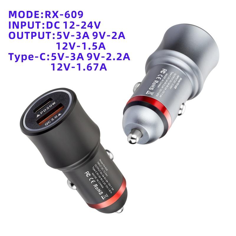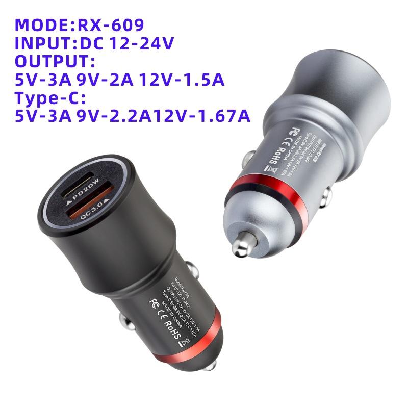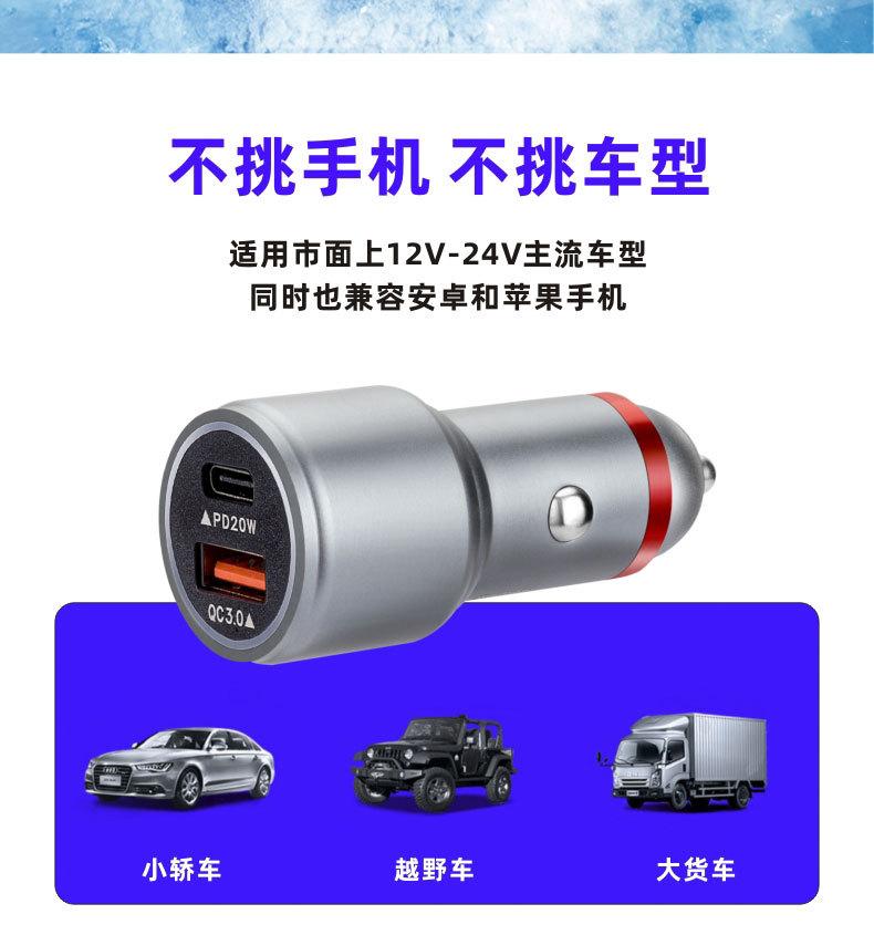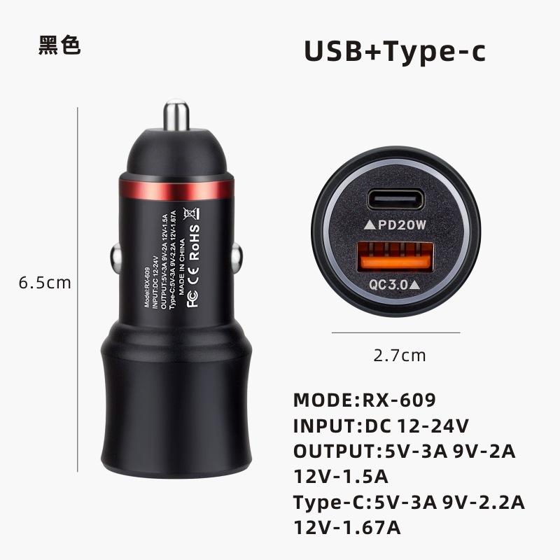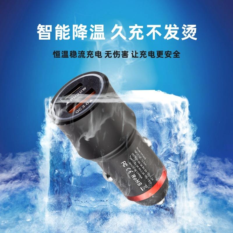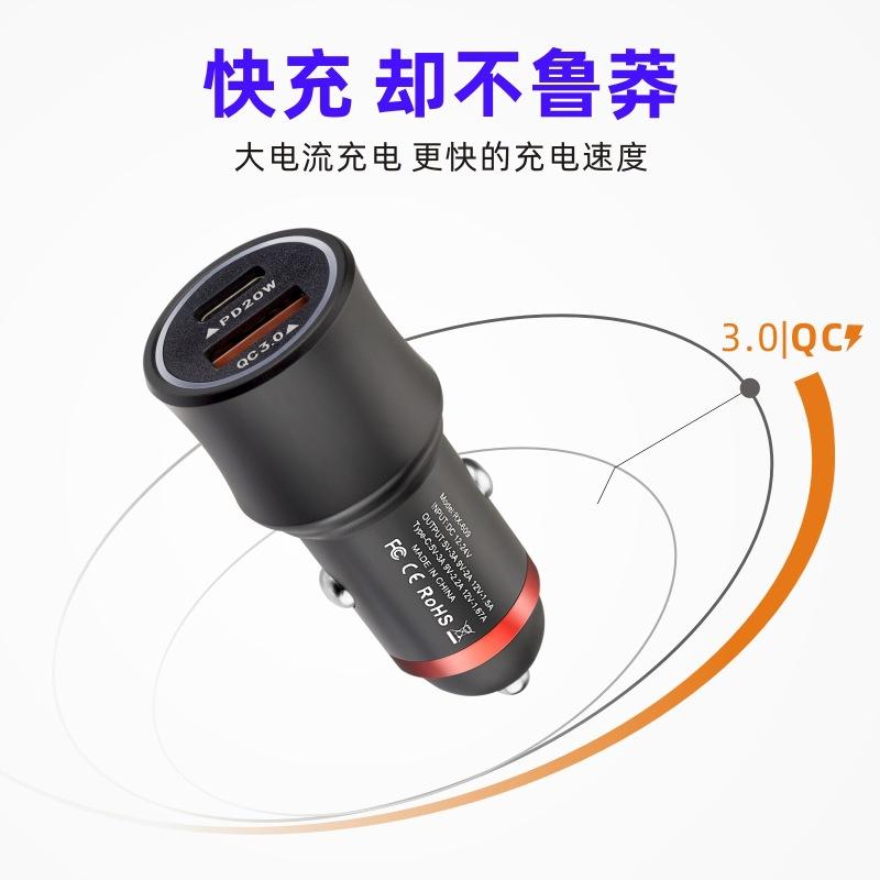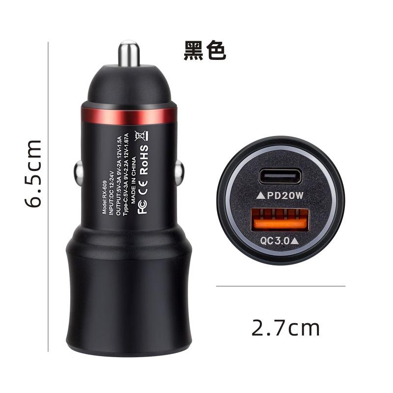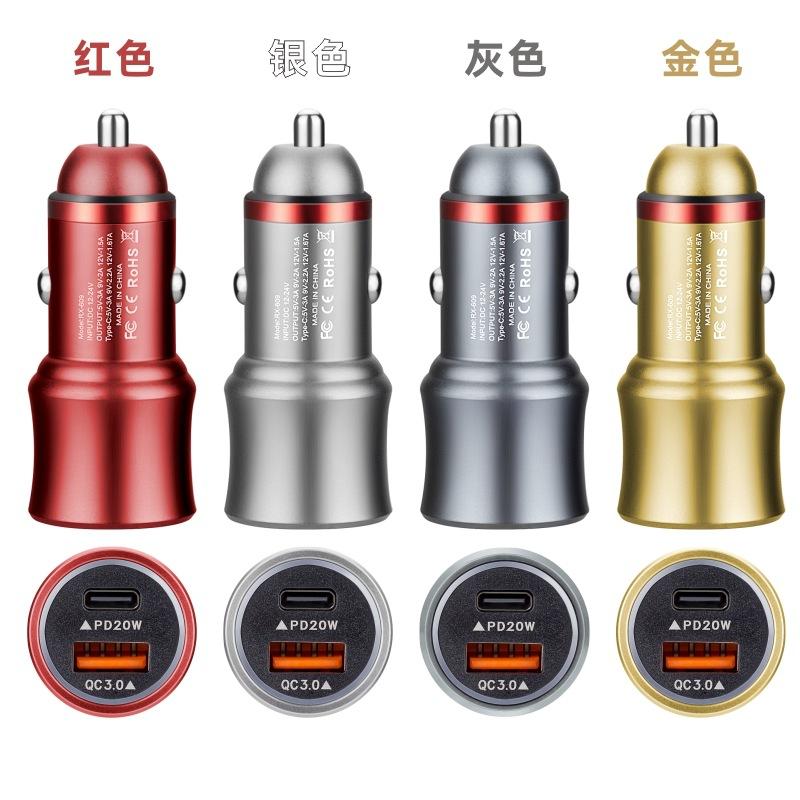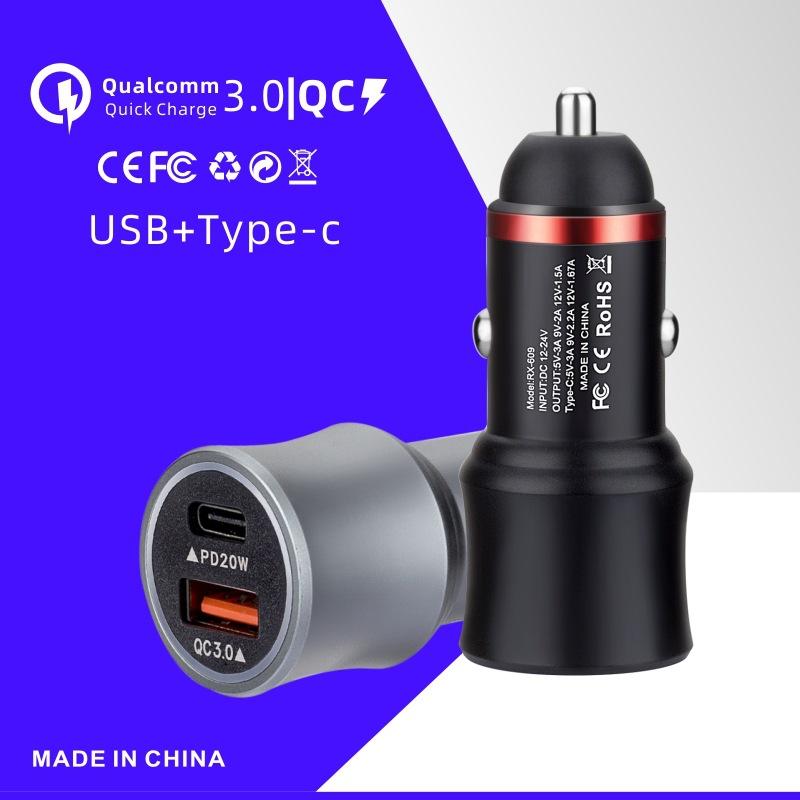 Cargador de coche para teléfono móvil QC3.0 con interfaz USB + Tipo-C, PD20W, venta al por mayor