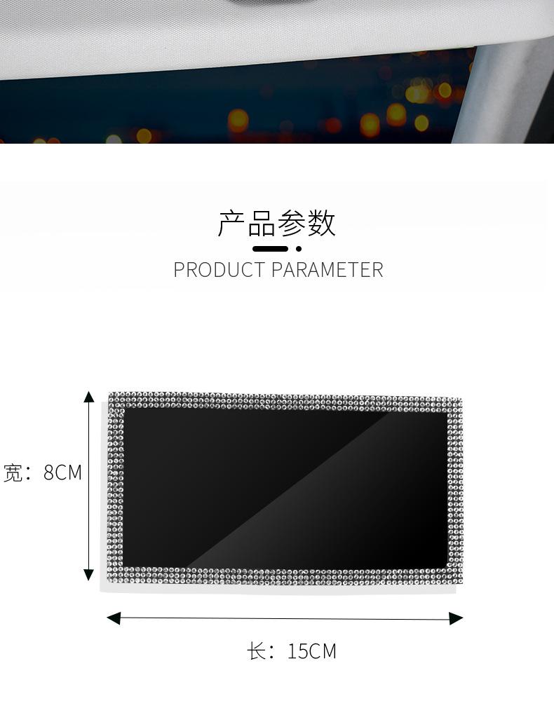 | Tarjetero de acero inoxidable con diamantes incrustados para coche, tarjetero de acero inoxidable con tapa abatible |