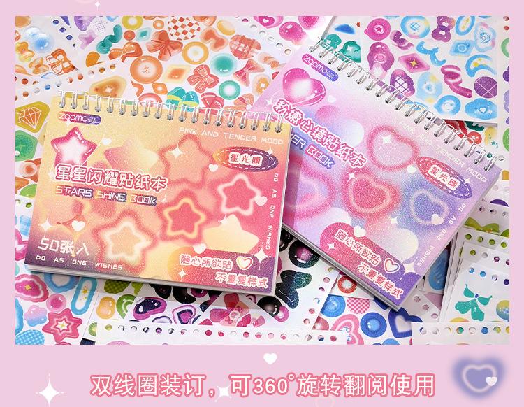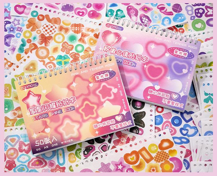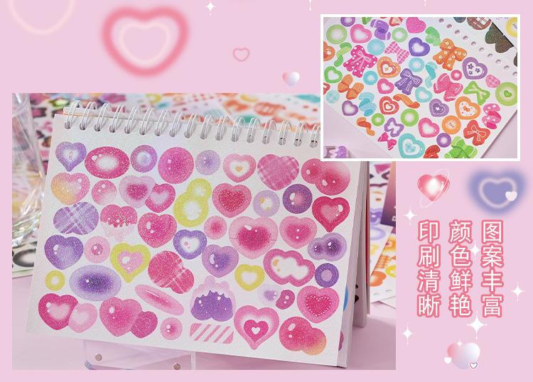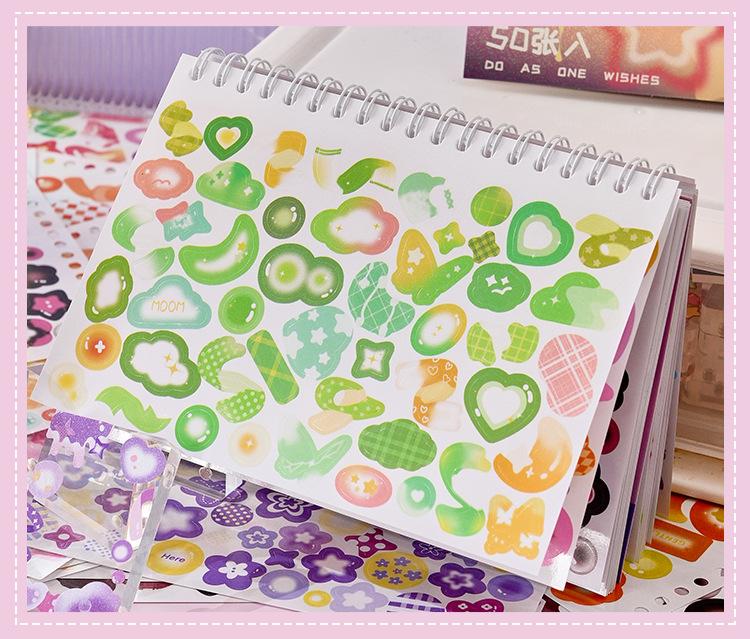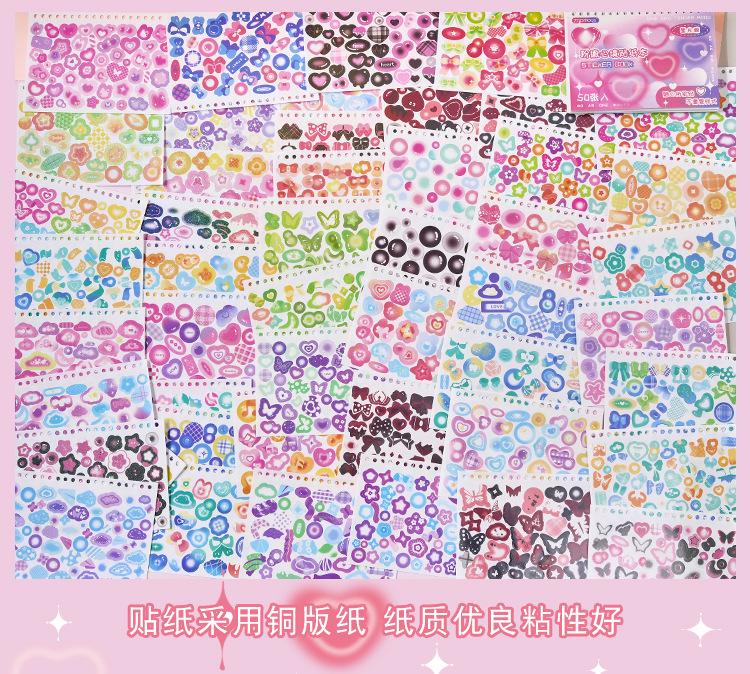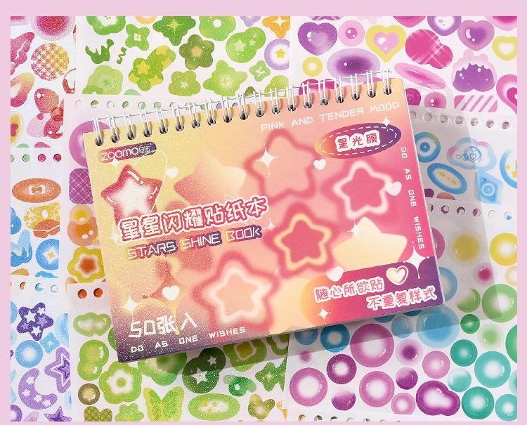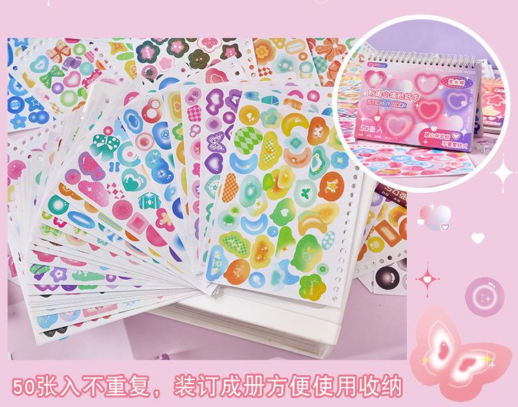 Espuma matutina 50 pegatinas de bobina esta serie de brillo de estrella Película flash Amor de burbujas mariposa decoración de collage para cuenta de mano