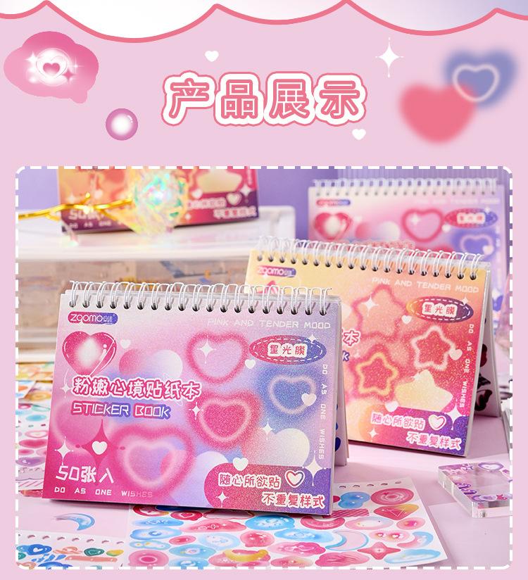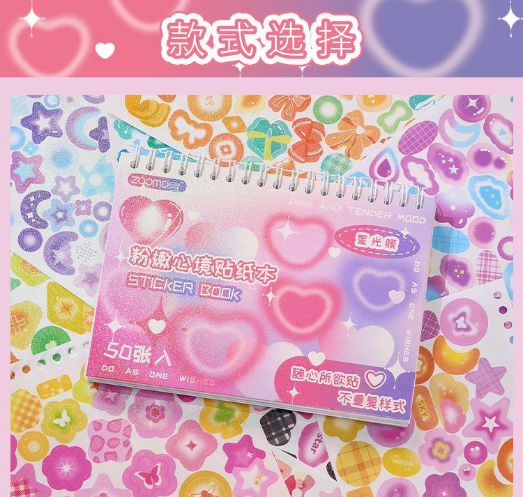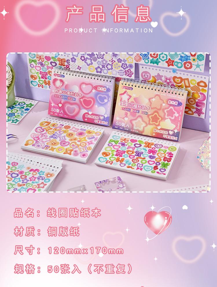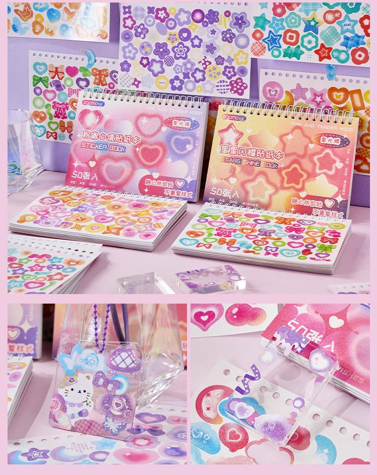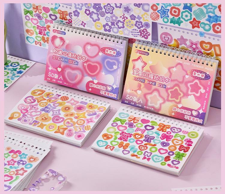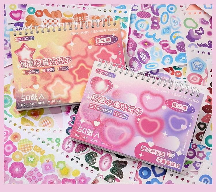 Espuma matutina 50 pegatinas de bobina esta serie de brillo de estrella Película flash Amor de burbujas mariposa decoración de collage para cuenta de mano
