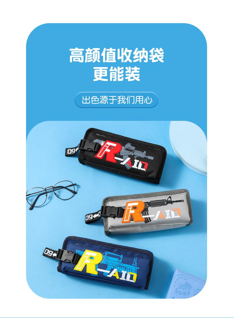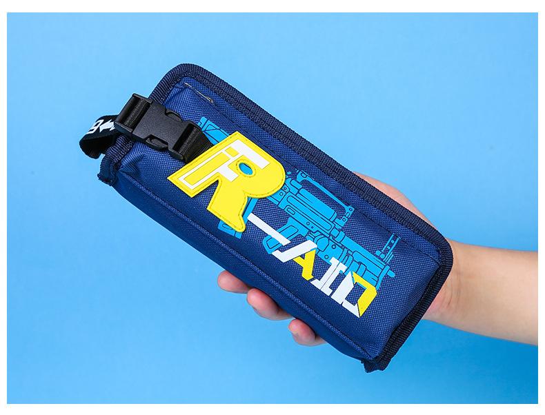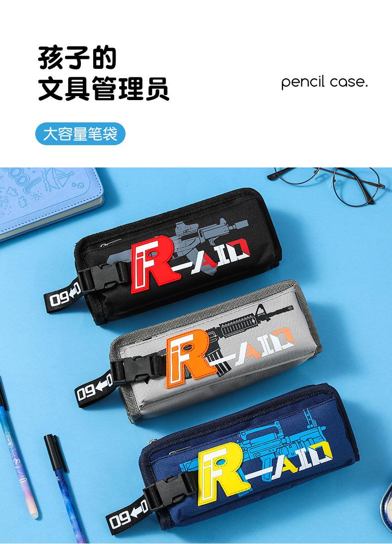 Grey snap pencil, Black buckle pen case, Navy buckle pencil case