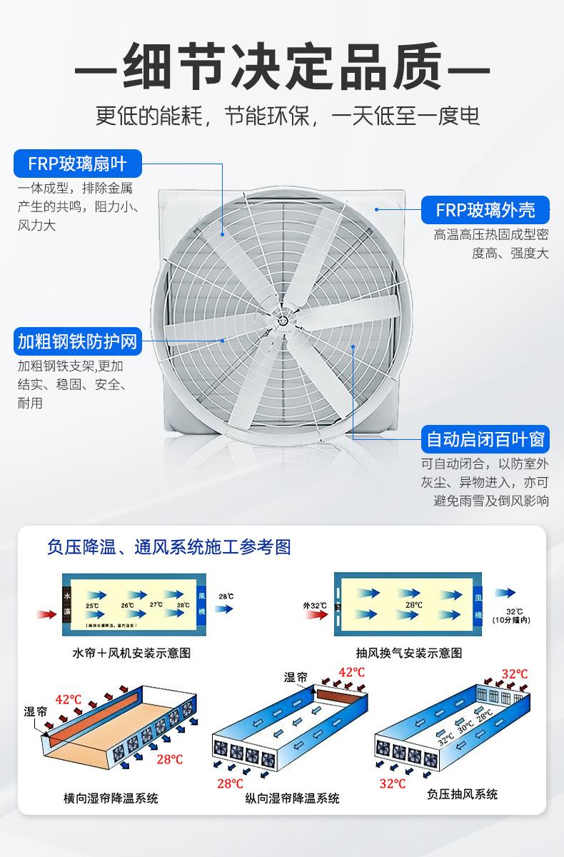 Ventilador de presión negativa de plástico reforzado con fibra de vidrio, suministro directo, extractor industrial, ventilador para granjas y minas, extractor anticorrosivo contra ácidos y álcalis.