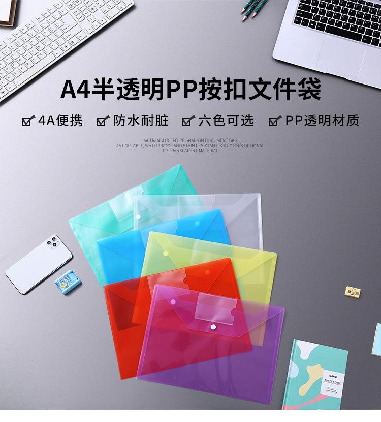 A4 Carpeta Transparente Colorida con Broche Bolsa para Facturas Transfronteriza Broche Estudiante Pp Archivo Impermeable Bolsa para Información