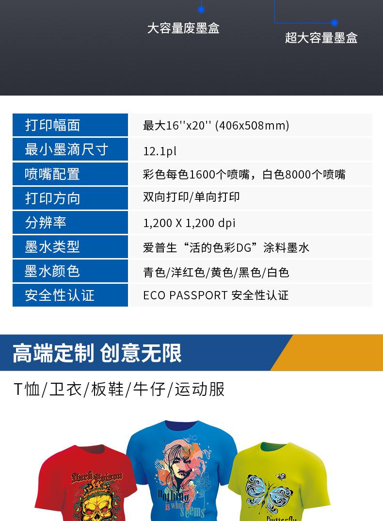 Printing speed (346mm x 408mm area) Standard mode light T-shirt: 34s dark T-shirt: 52s