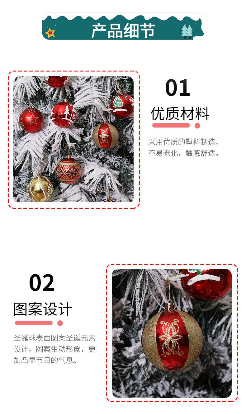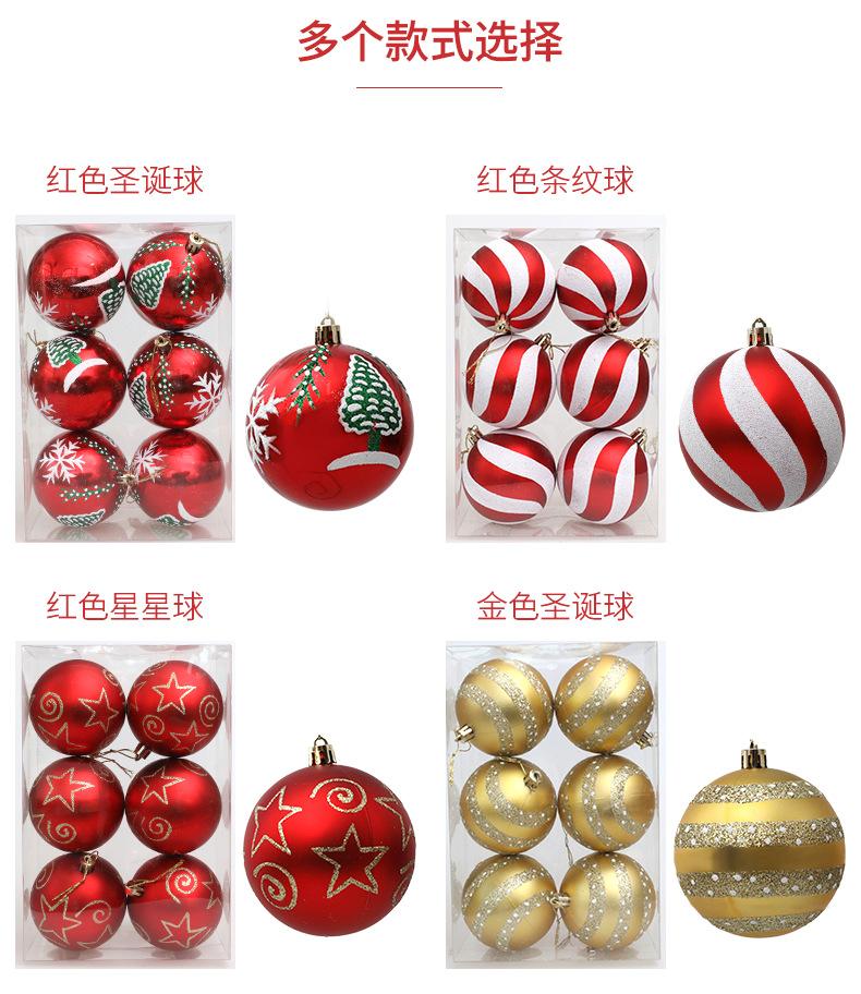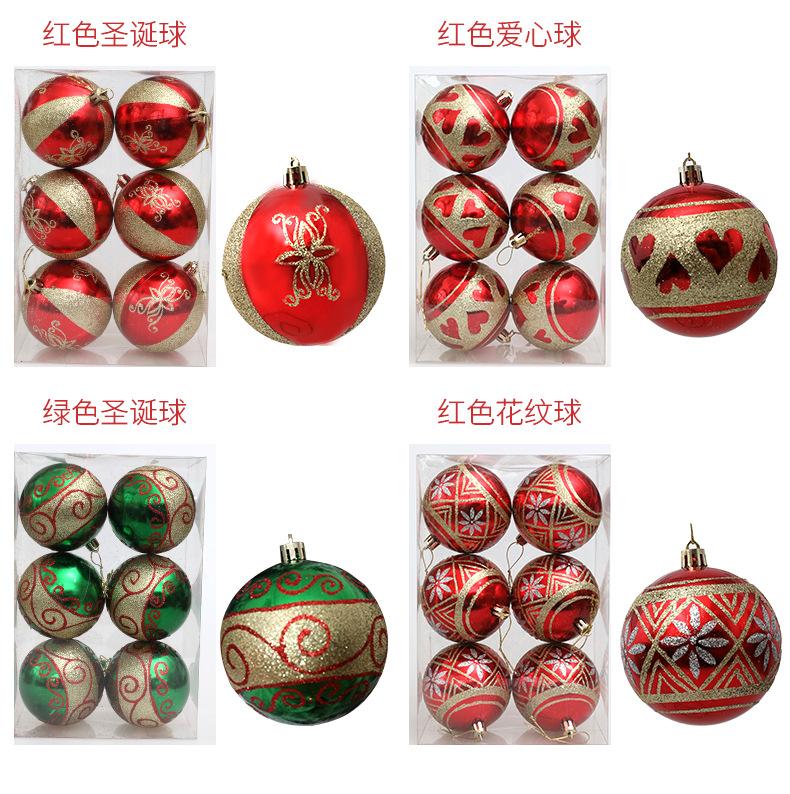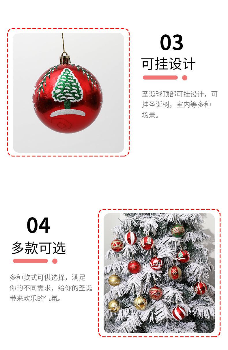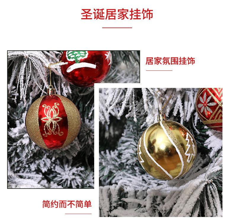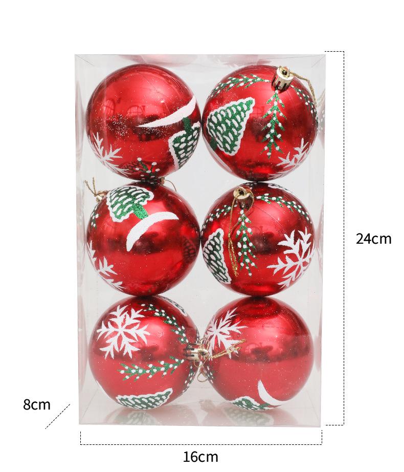 Venta al por mayor transfronteriza de adornos para árbol de Navidad, 8 cm, pintados, bolas navideñas, 6 unidades, bolas de plástico navideñas, colgantes decorativos.
