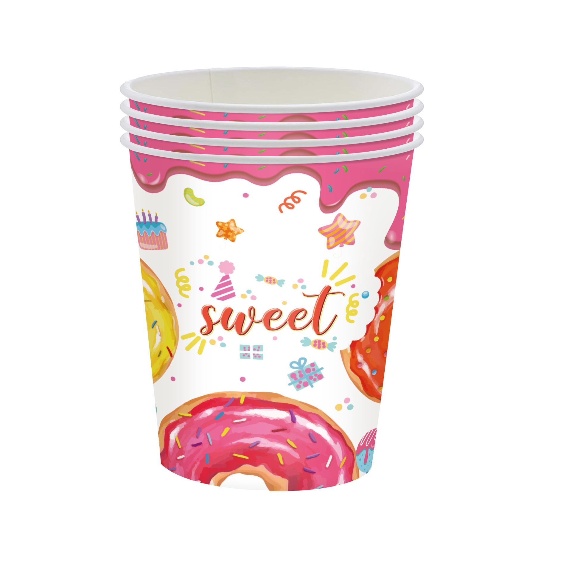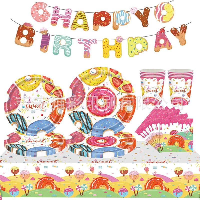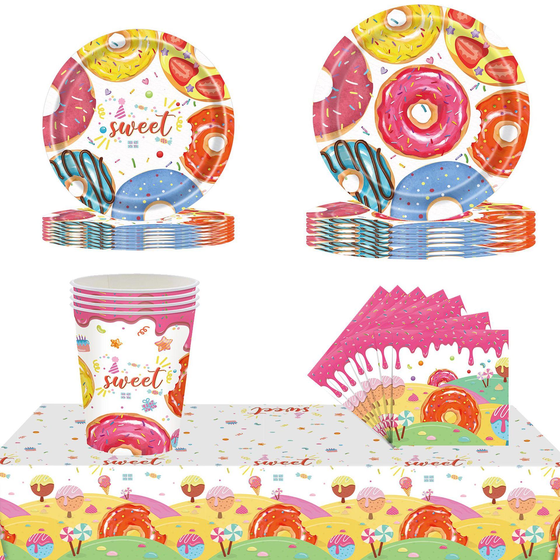 Vajilla de Papel con Tema de Donas para Fiesta de Cumpleaños Plato de Papel Servilleta de Papel Mantel Set de Decoración de Cumpleaños para Niña