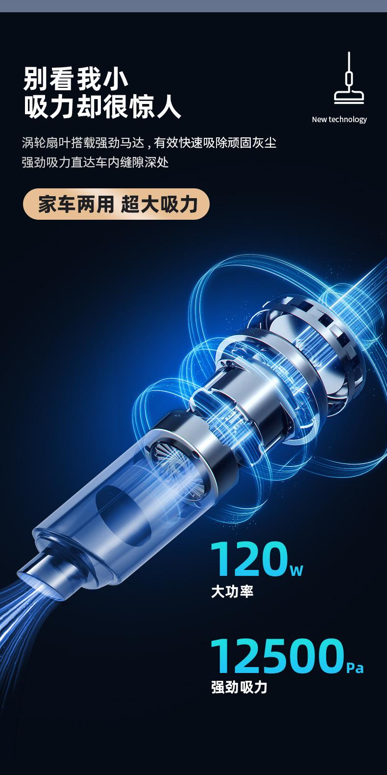 Aspiradora de coche de gran succión, carga inalámbrica, para uso doméstico, pequeña, de mano, de alta potencia y potente.