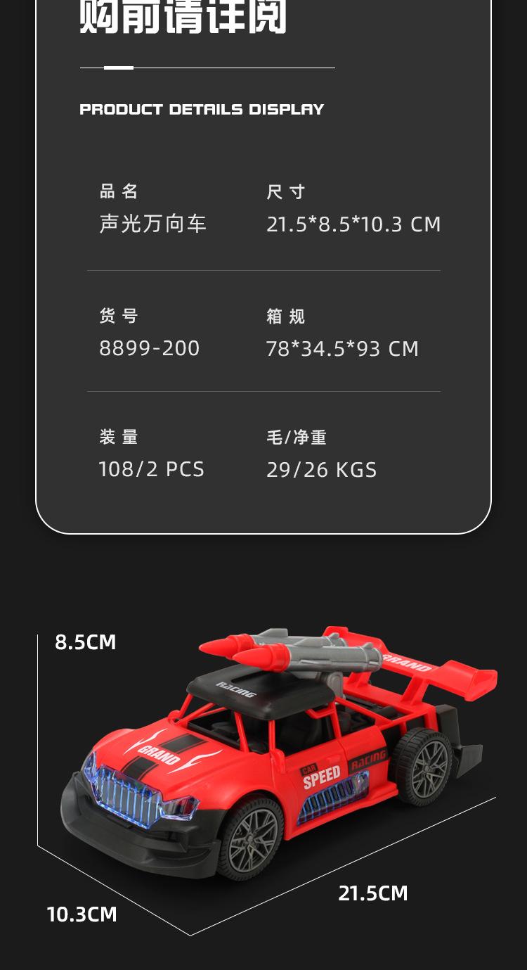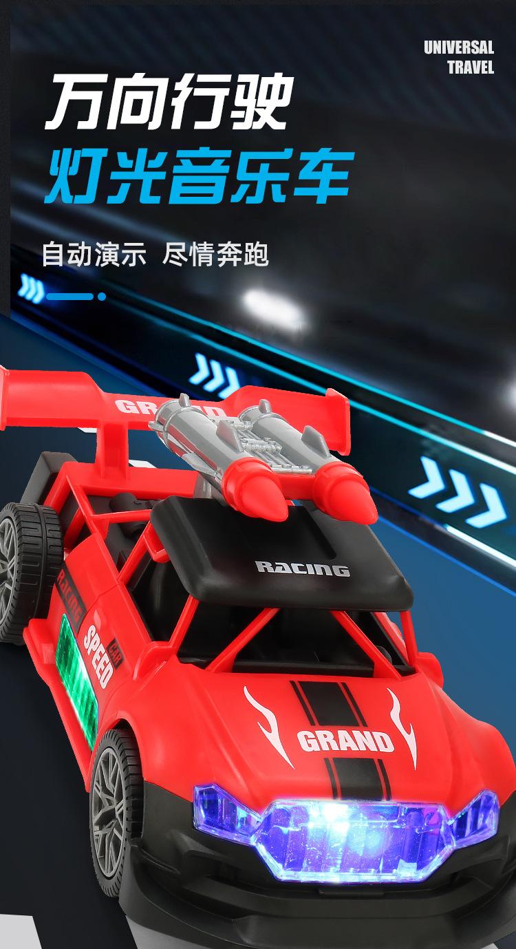 Nuevo producto coche misil universal eléctrico modelo de simulación luz musical colorida carreras coche de juguete para niño puesto venta al por mayor