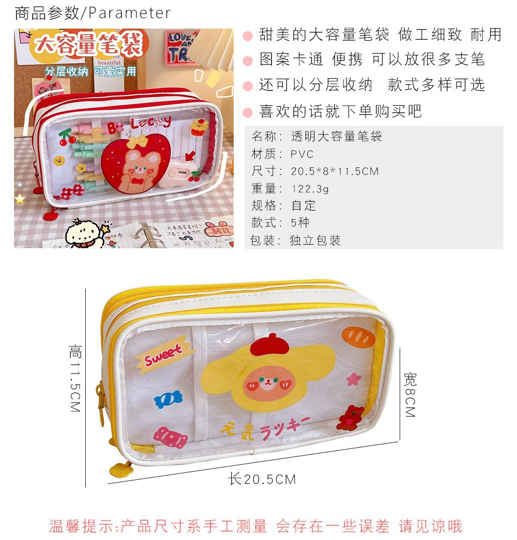 Estuche transparente de gran capacidad con bonitos dibujos para estudiantes de secundaria y primaria, bolsa de papelería japonesa.