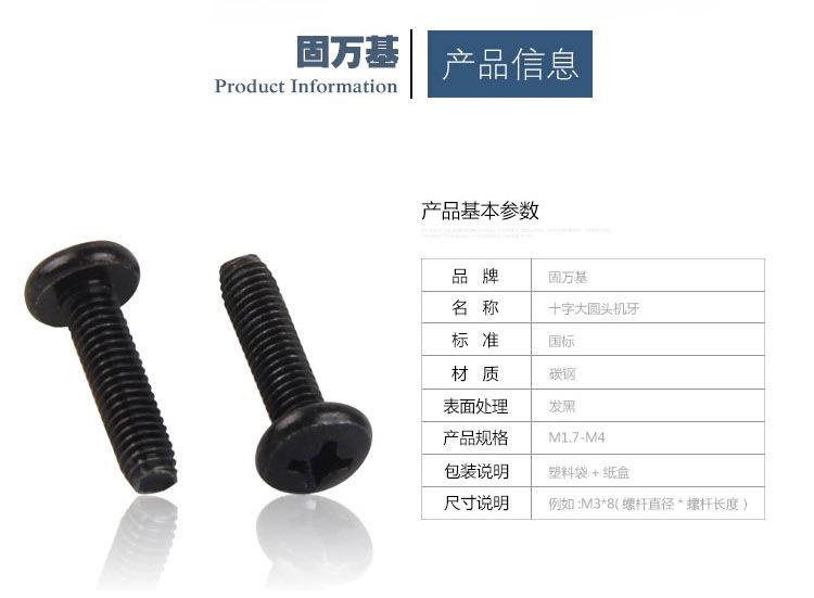 Tornillo de cabeza redonda grande con cruz negra de hierro, tornillo de cabeza plana grande, tornillo de alambre para máquina, tornillo de cabeza plana M2/M2.5/M2.6M3M4