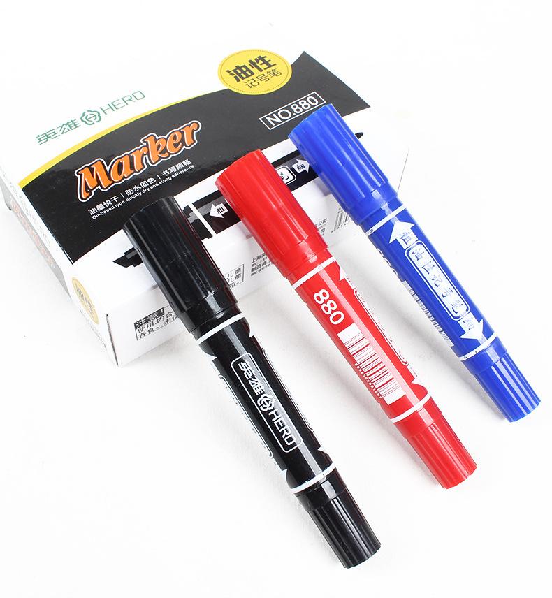 Marcador de Gran Capacidad Hero 880 a Base de Aceite Grande de Doble Punta Colorido Grueso Pluma Marcadora de Doble Punta Logística Exprés Pluma Especial