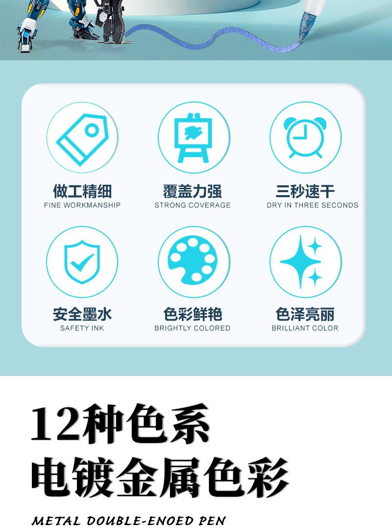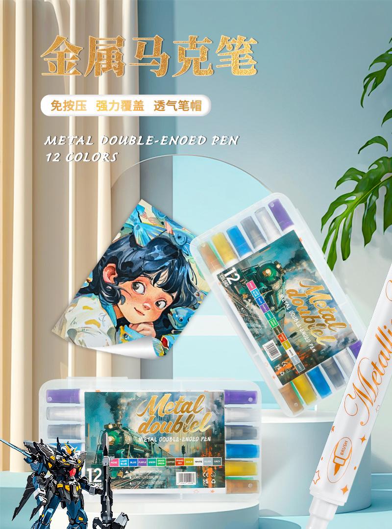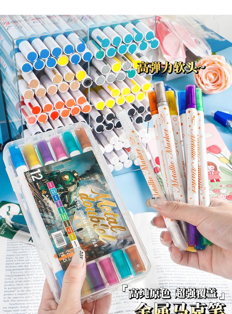 Marcador acrílico metálico de doble punta marcador especial para estudiantes color opaco apilable a base de agua pincel traje al por mayor