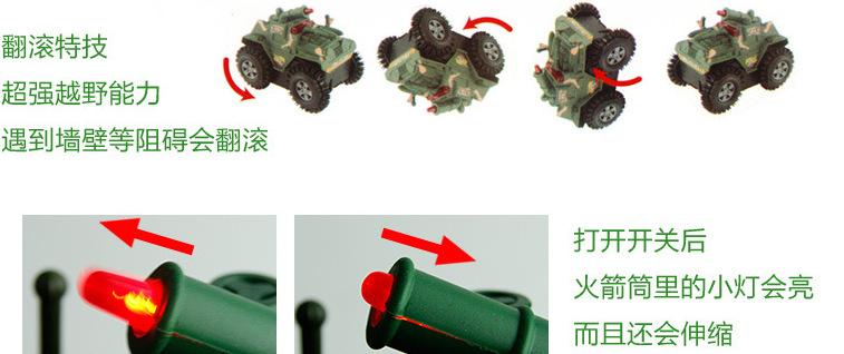 Descripción del producto: Este es un coche blindado de juguete muy hermoso. Es muy fácil de operar. Solo requiere 2 pilas número 5. Encienda el interruptor en la parte trasera y el coche funcionará. El exquisito y delicado diseño de las ruedas de goma hace que el coche ruede de forma más flexible y suave. Lo que es más interesante es que puede volcarse por sí mismo. ¡Es muy especial!