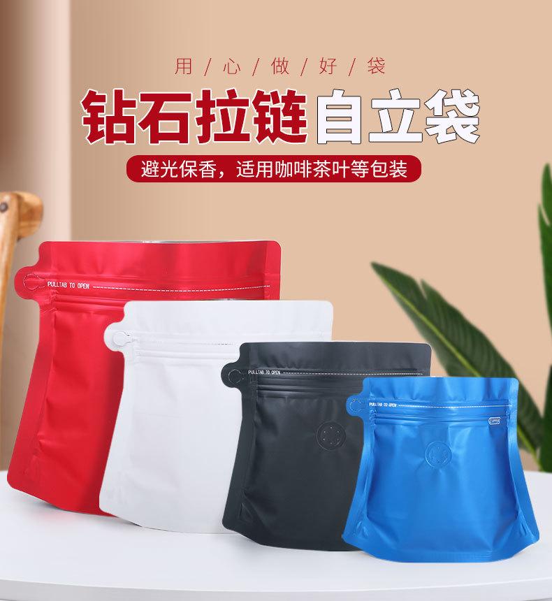 Bolsa de aluminio con válvula de aire para café en grano, para aperitivos, té, autosellada y con base, con forma de diamante.