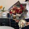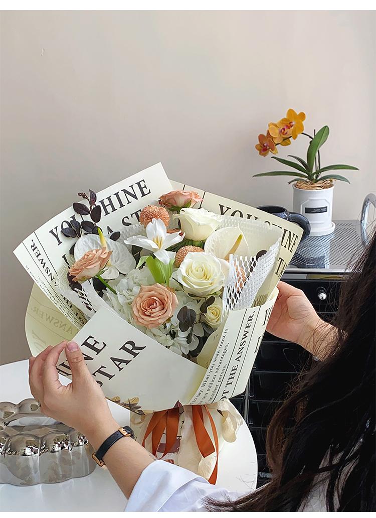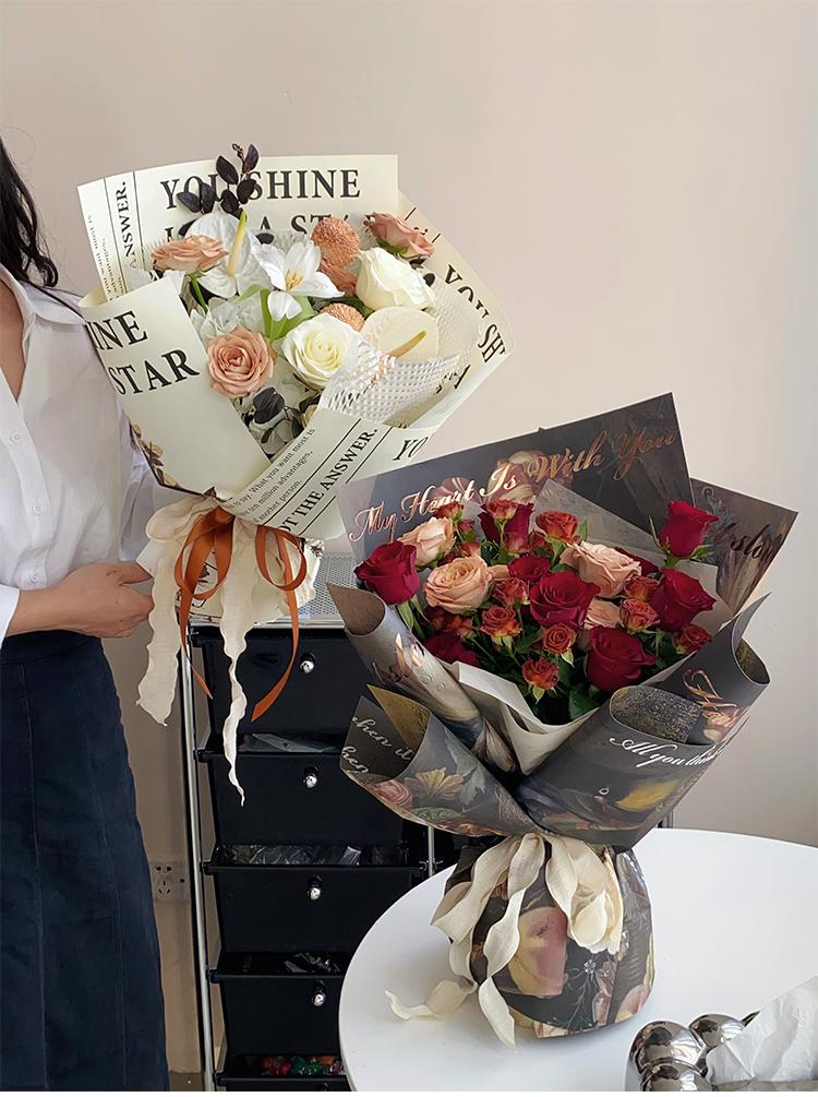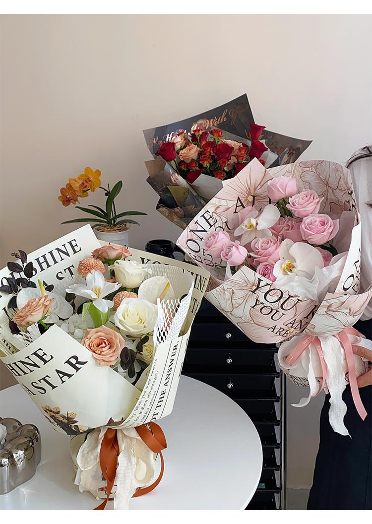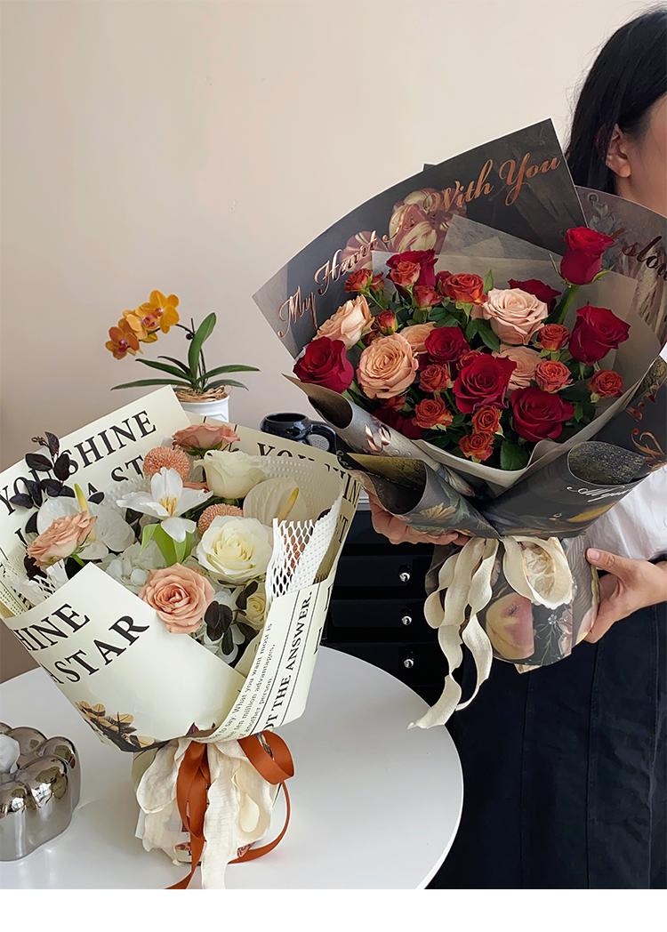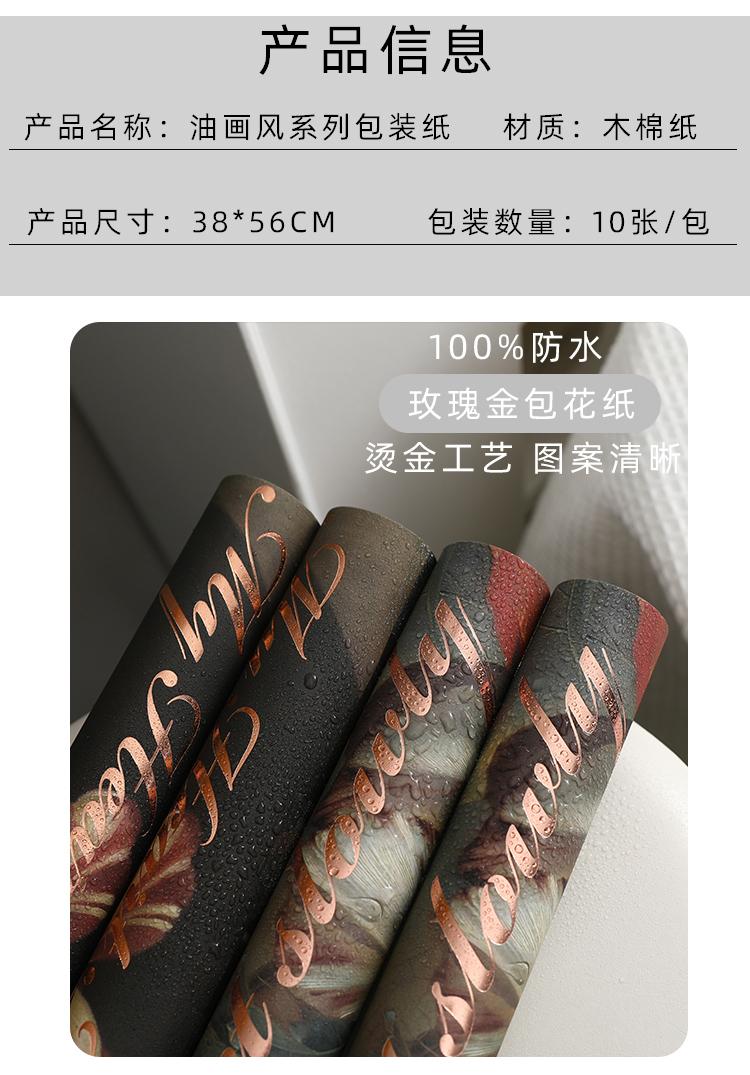 Zhuo fibra rosa dorado estilo pintura al óleo ramo bolsa de regalo flor madera papel de algodón papel floral impermeable papel de envolver flores