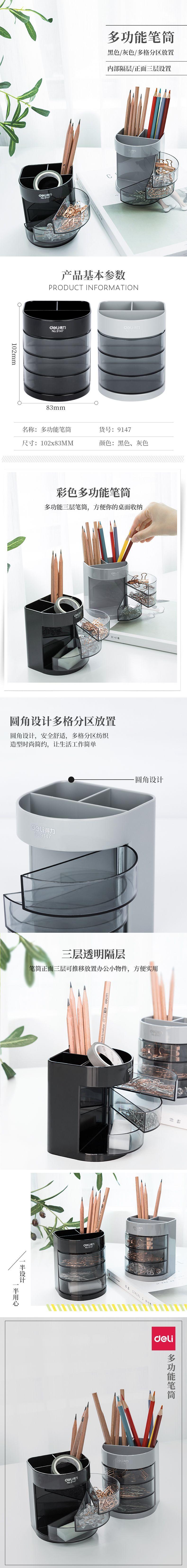 Deli 9147 Portalápices de escritorio de almacenamiento simple Portalápices de plástico Portalápices de oficina