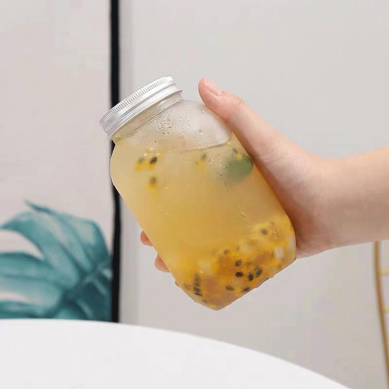 Botella de té feliz, botella de plástico PET, botella de té con leche de 500 ml, botella de bebida, botella de jugo para llevar, taza de fruta creativa