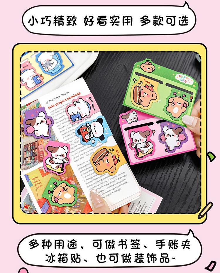 Marcador magnético de dibujos animados, lindo marcador de animal pequeño con forma especial, clip de libro de lectura de papel de doble cara para estudiantes, clip de libro