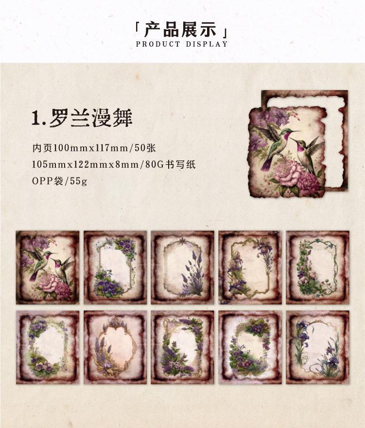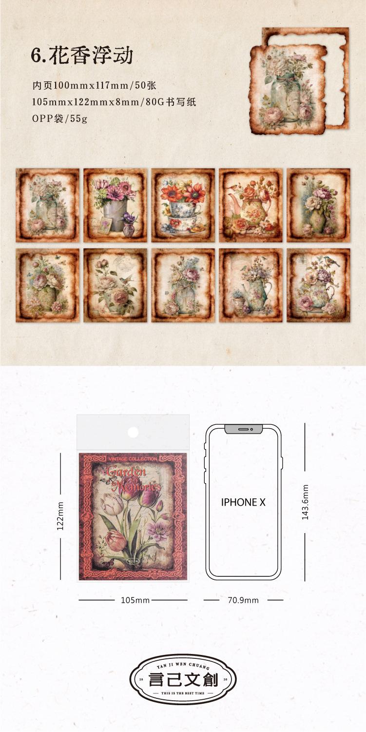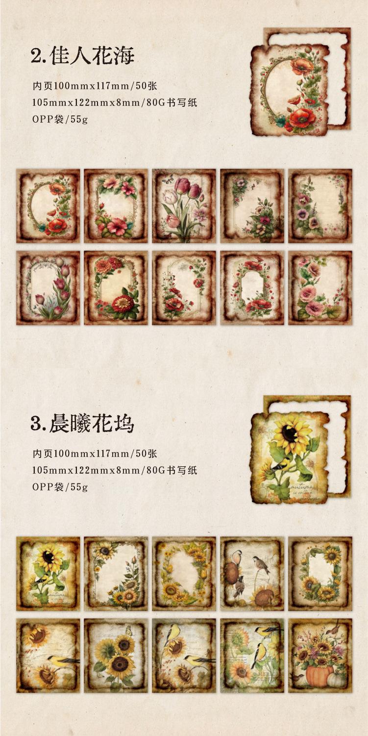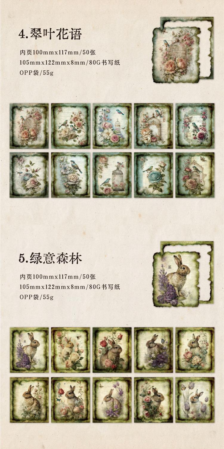 Yanji Libro de Materiales Serie Dominio Flor de la Memoria Libro de Mano Europeo Retro de Flores y Animales Decoración Collage Mensaje