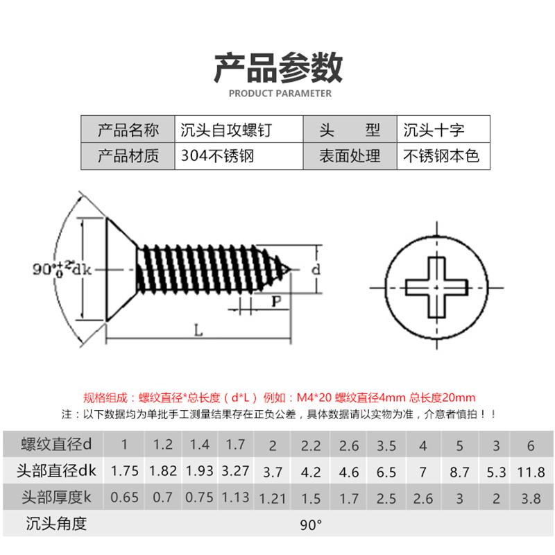 Tornillo autorroscante de acero inoxidable 316, tornillo de cabeza avellanada cruzada, tornillo de extensión M2M3M4M5M6, tornillo de cabeza plana GB846