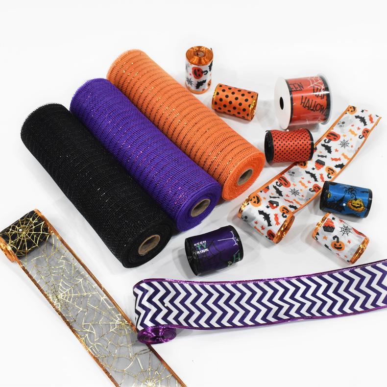 Escena de decoración de Halloween con explosiones transfronterizas de Amazon, diseño de festival fantasma, cinta de malla naranja, red decorativa