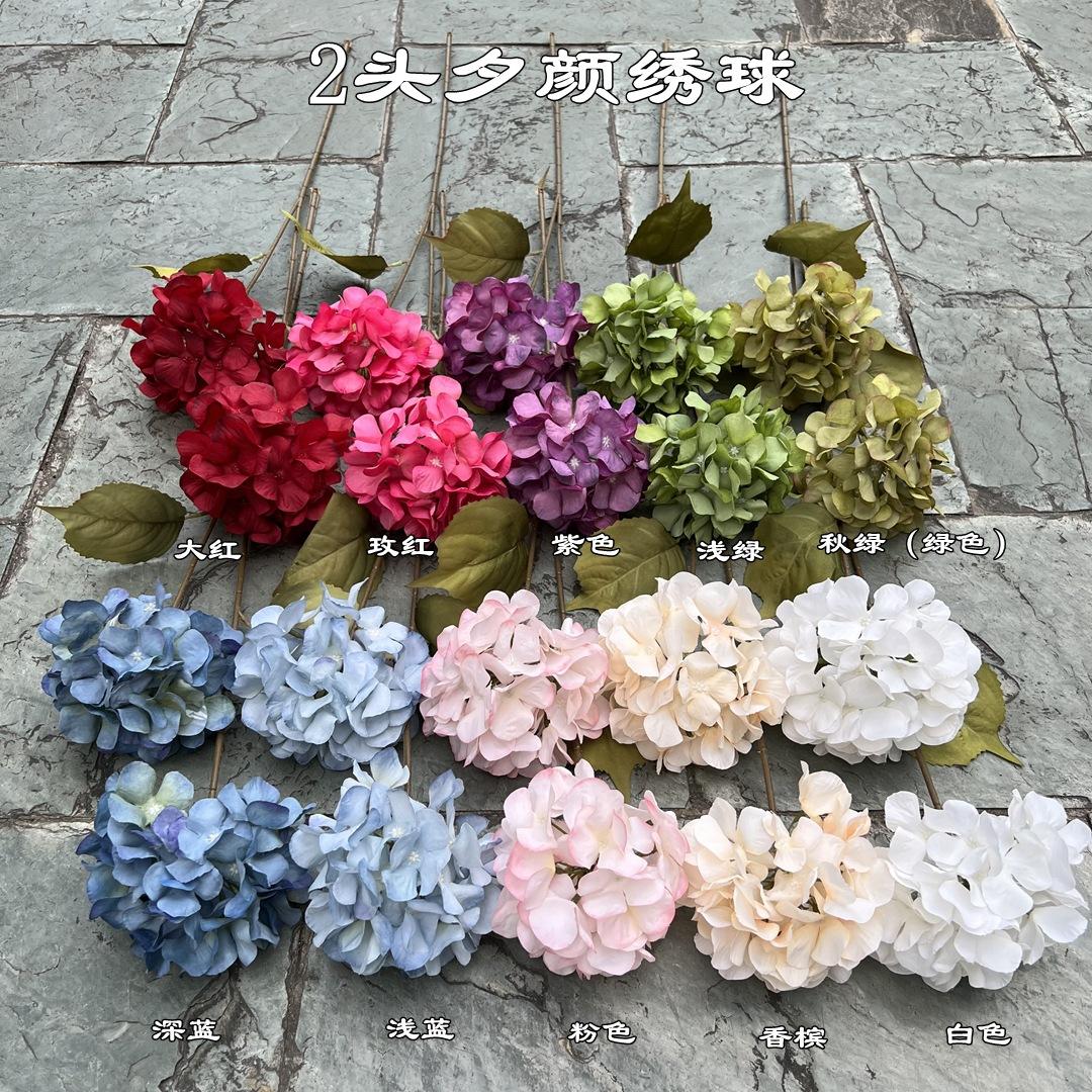 2 Head Xiyan Hydrangea-White, 2 Xiyan Hydrangea-Rose Red, 2 xiyan hydrangeas-light blue, 2 xiyan hydrangeas-bi...