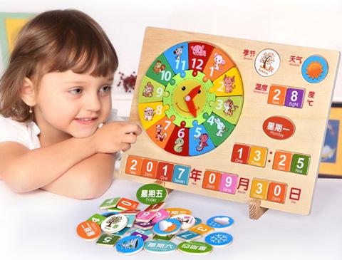Reloj calendario cognitivo digital de madera para niños, escuela primaria, jardín de infantes, distrito educativo, educación temprana, rompecabezas, clima, semana